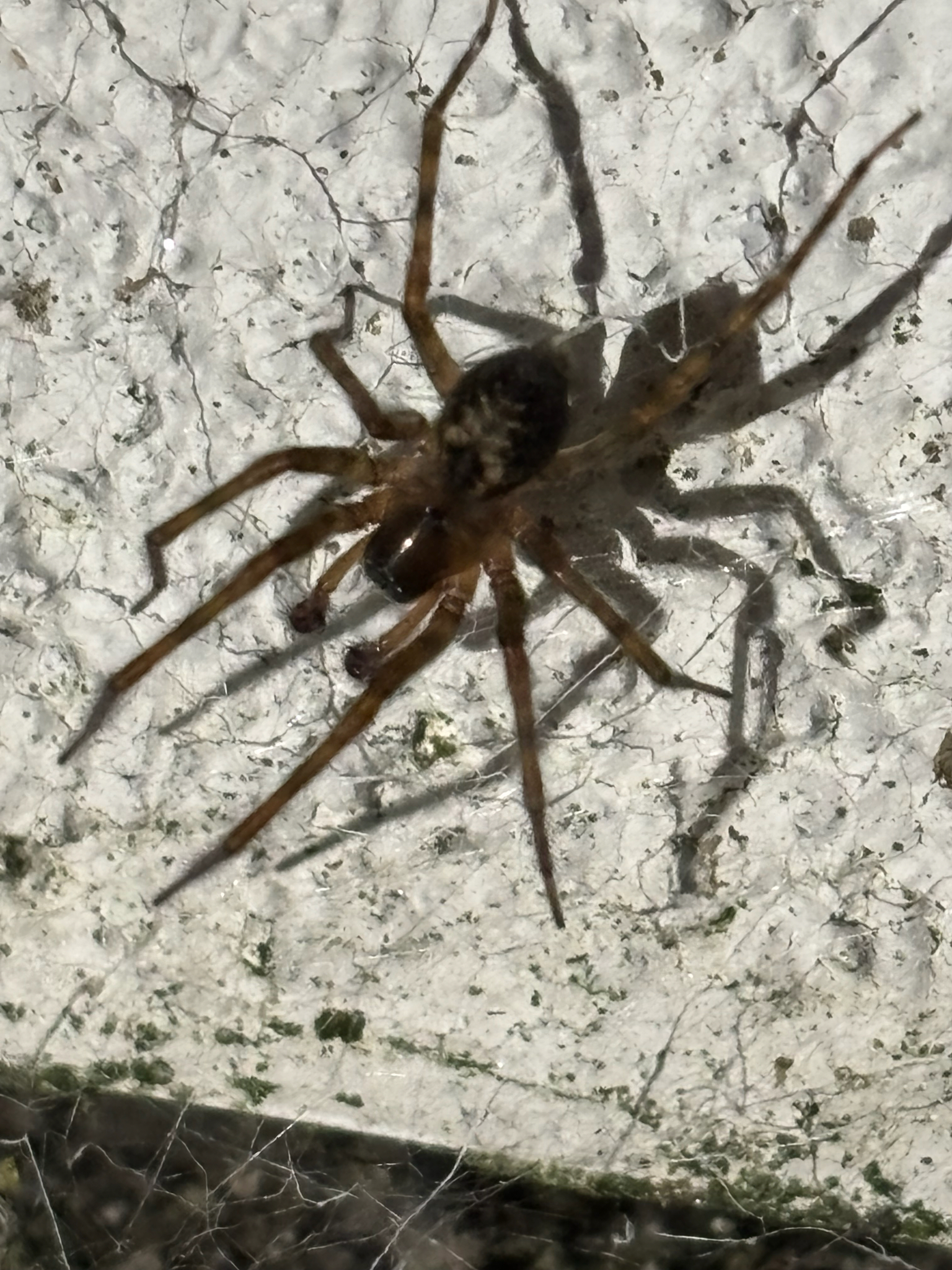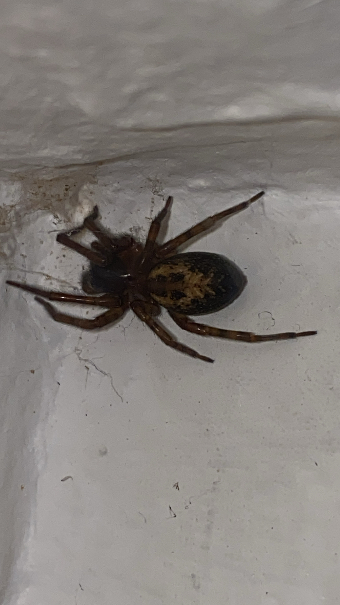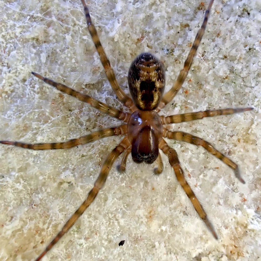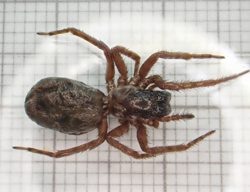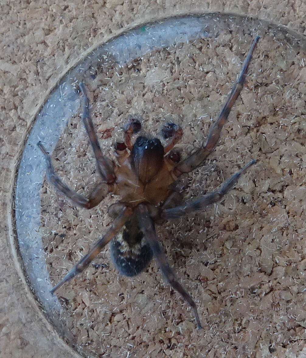 The spider probably occurs in almost every house and outhouse in the country. It makes its characteristic web of cribellate silk in cracks in the brickwork, under the eaves, under undisturbed rubble or debris and between cracks in wooden sheds and fences, etc. (Roberts 1995). Channels carrying cords for sash windows are a favoured retreat inside houses (J. Newton, pers. comm.). It is also occasionally found under bark in more natural habitats like woods especially where these are near habitation. It is possible that it replaces A. fenestralis in these situations. Adults occur throughout the year but both sexes peak in the autumn, and females are recorded again in numbers during the spring and early summer.Status