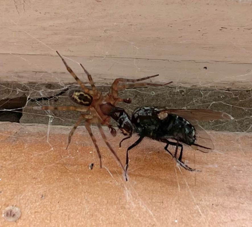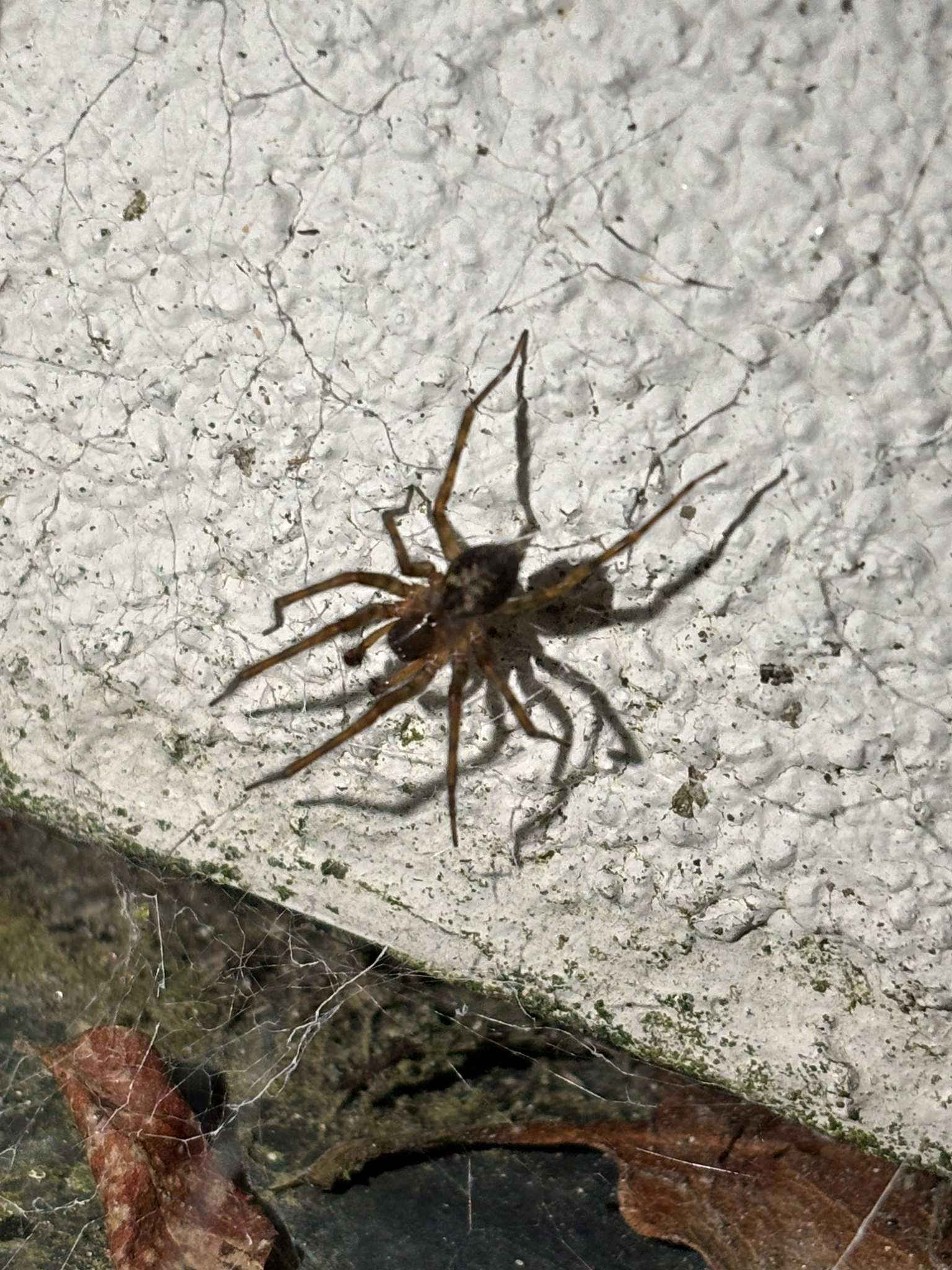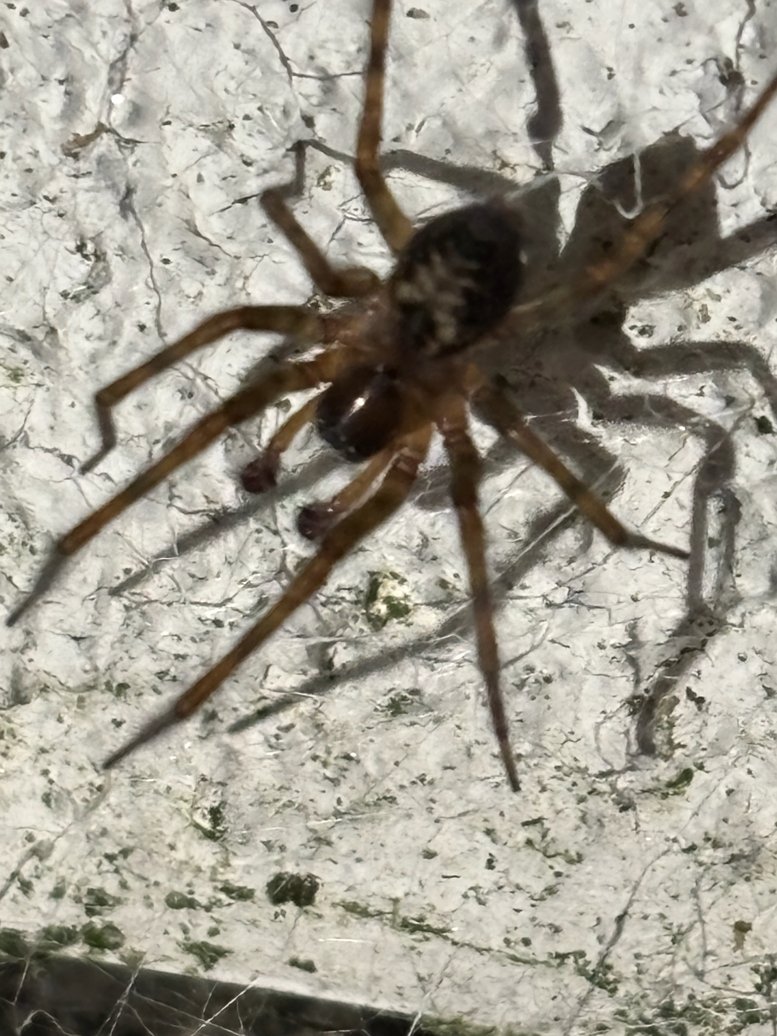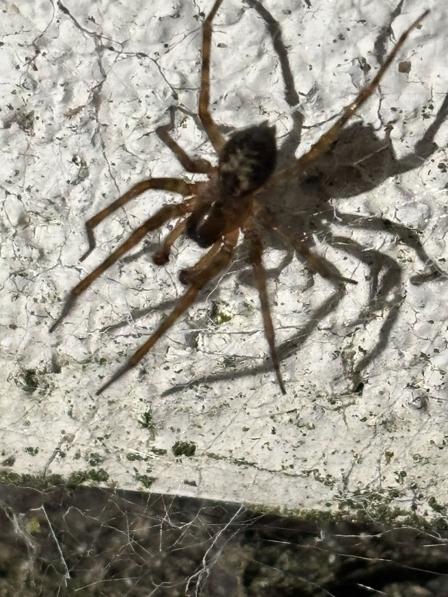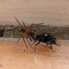 The spider probably occurs in almost every house and outhouse in the country. It makes its characteristic web of cribellate silk in cracks in the brickwork, under the eaves, under undisturbed rubble or debris and between cracks in wooden sheds and fences, etc. (Roberts 1995). Channels carrying cords for sash windows are a favoured retreat inside houses (J. Newton, pers. comm.). It is also occasionally found under bark in more natural habitats like woods especially where these are near habitation. It is possible that it replaces A. fenestralis in these situations. Adults occur throughout the year but both sexes peak in the autumn, and females are recorded again in numbers during the spring and early summer.Status