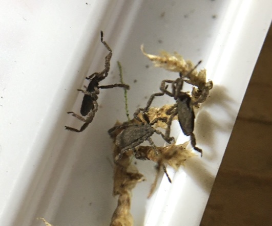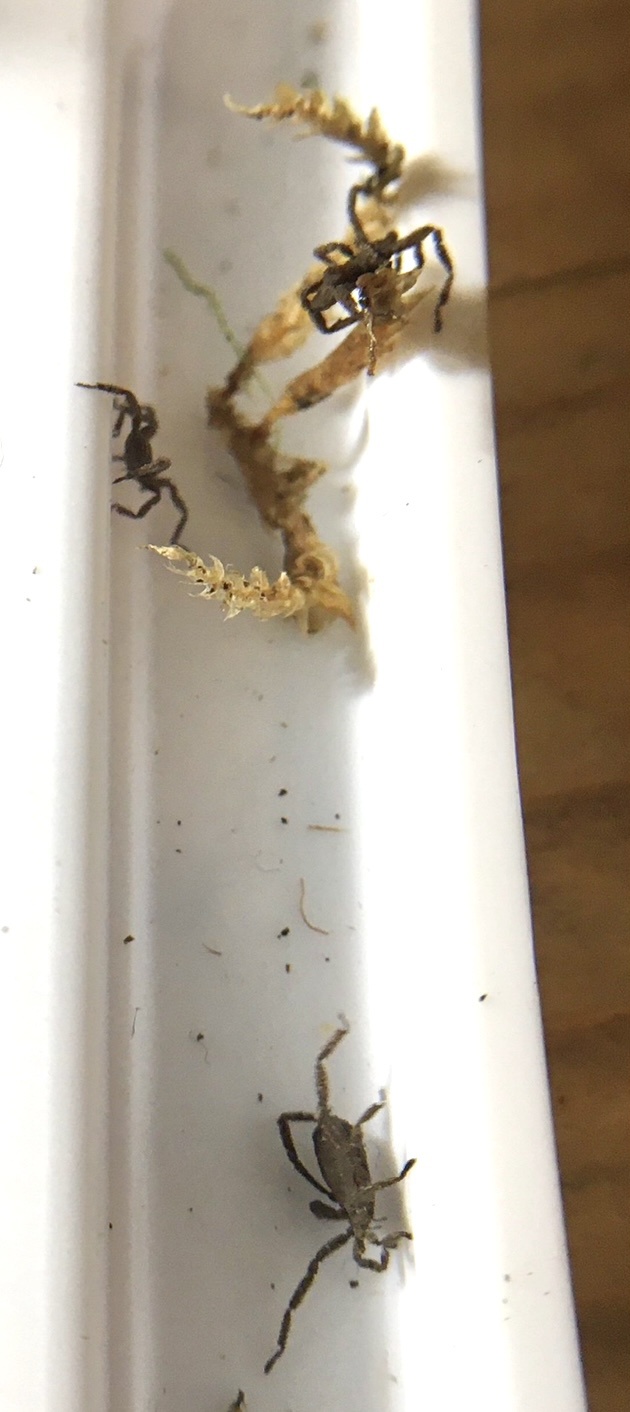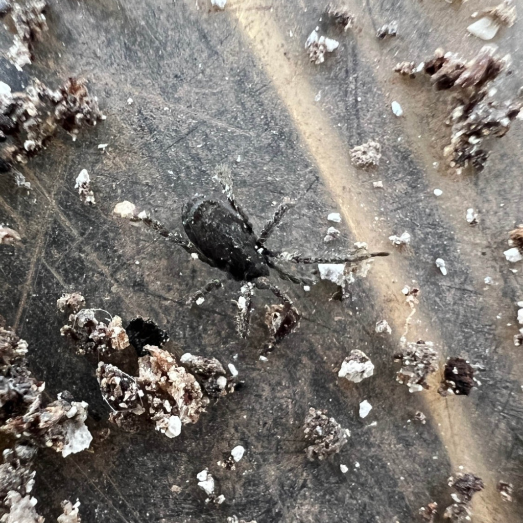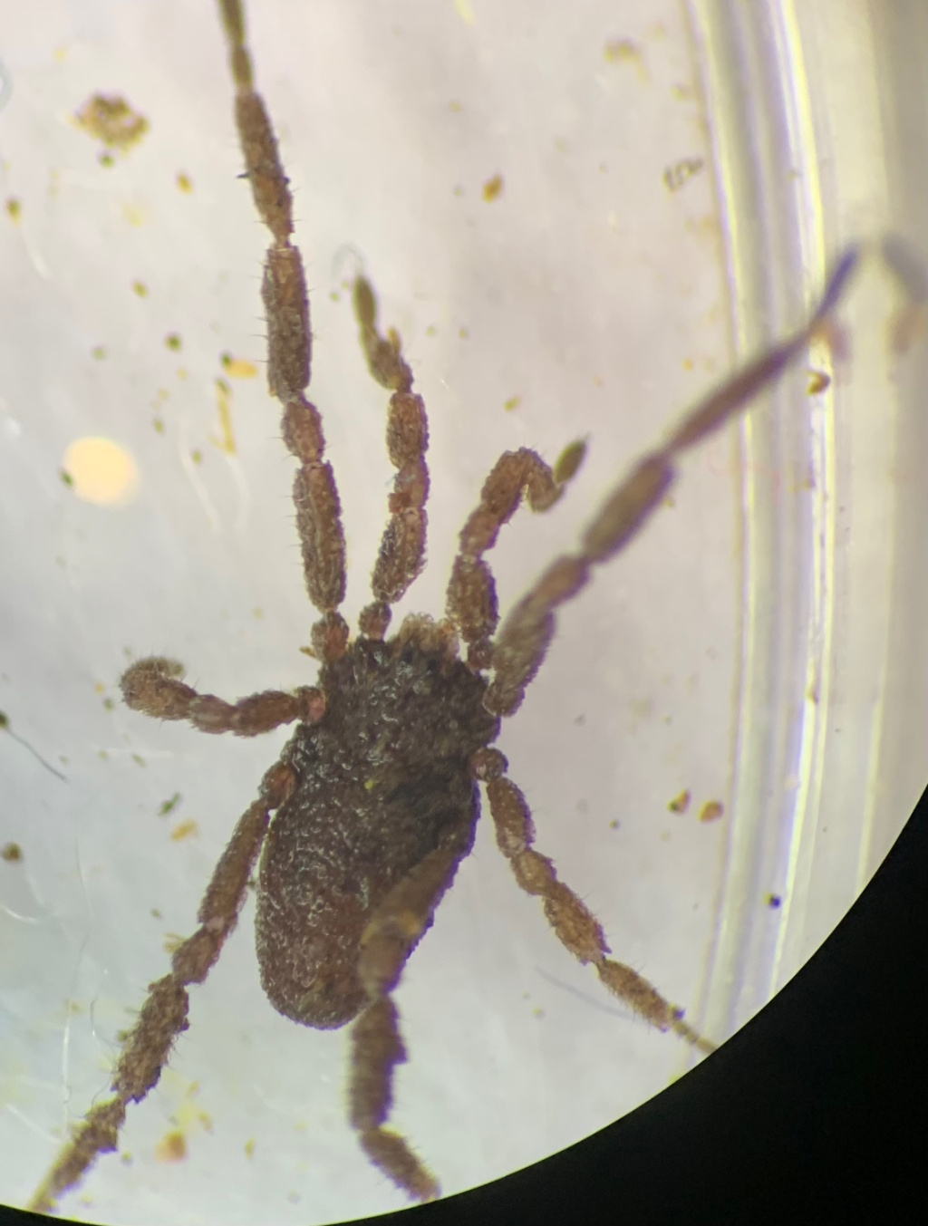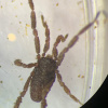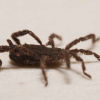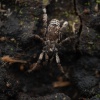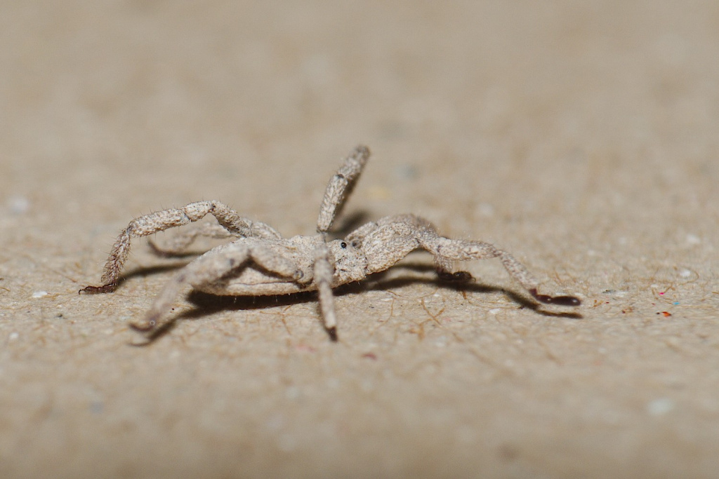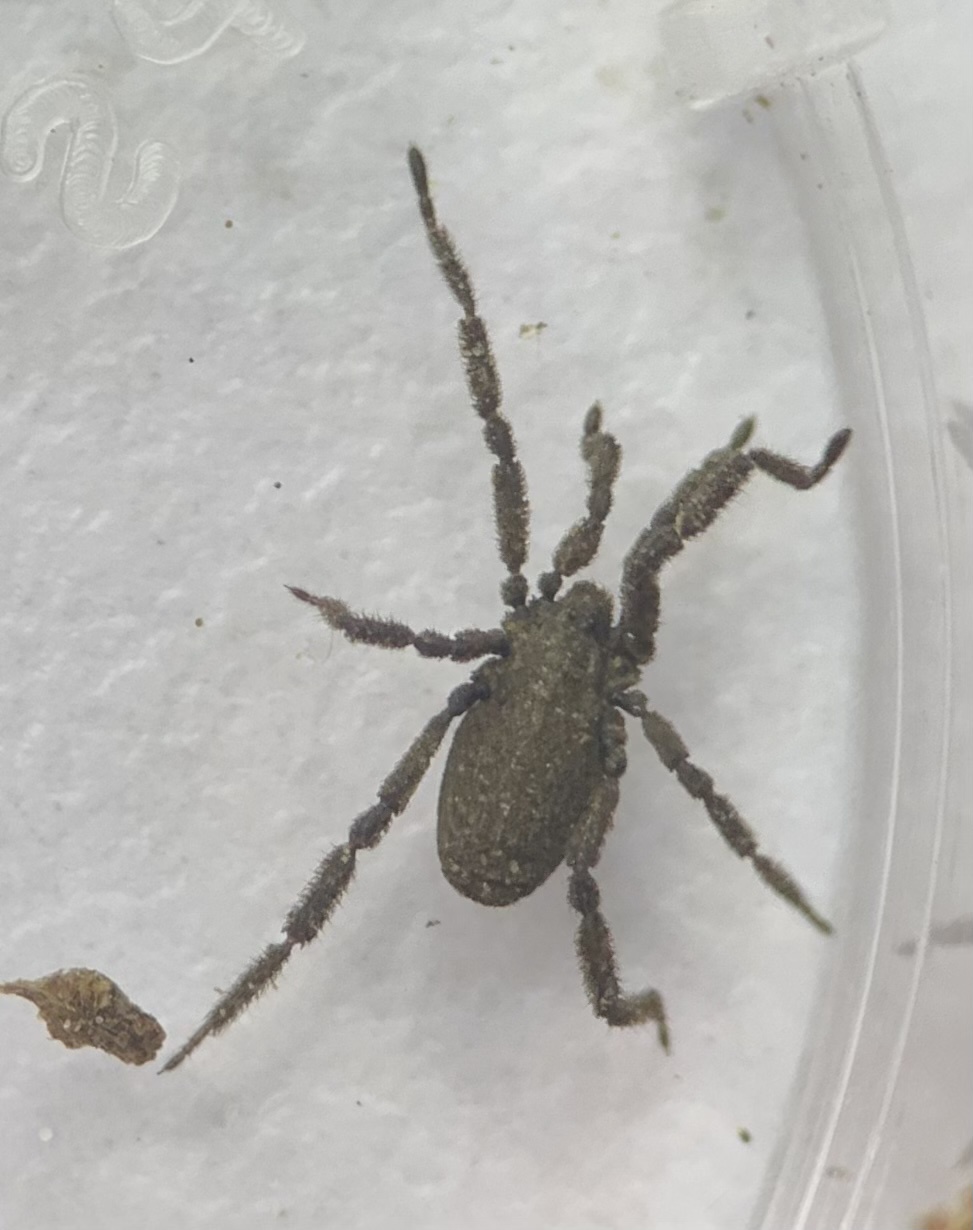 Like Trogulus tricarinatus, this flattened, short-legged species is restricted to the ground layer in calcareous soils and is a specialist (but not obligate) snail-feeder. It is most easily found by sieving soil and pitfall trapping but has been collected from under stones and logs, and in leaf-litter, grass and moss, preferring rough grassland and semi-open woodland. Both Trogulus and Anelasmocephalus secrete glue by which soil particles adhere to their bodies - presumably providing them with visual camouflage against predators and possibly also allowing them to blend chemically and physically with their soil environment. Anelasmocephalus hooded mouth-parts may reduce the problems of dealing with snail mucus and soil. Its habit of playing dead (catalepsy) and its colour, blending with soil particles, makes it difficult to spot for birds and other visual predators (and humans). Juveniles are generally free of soil and a lovely purple colour. Adults are present throughout the year and may live for up to three years. Eggs are laid in empty snail shells and protected with a web-like secretion from the ovipositor (Pabst 1953). Juveniles are found mostly between May to October. HRS records show this species occurring at altitudes over 200m in the Malham area of Yorkshire.