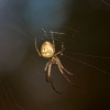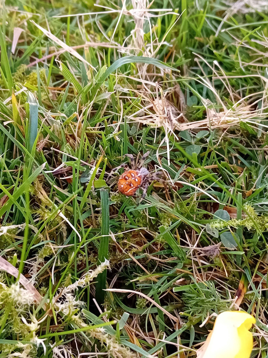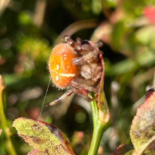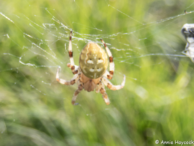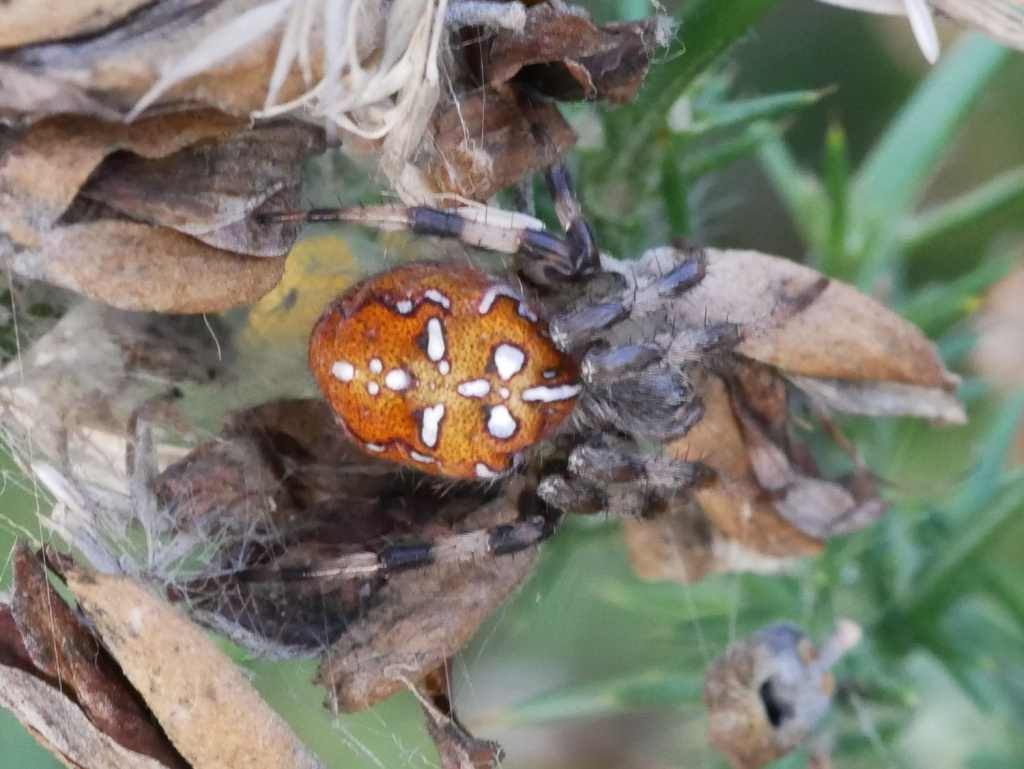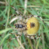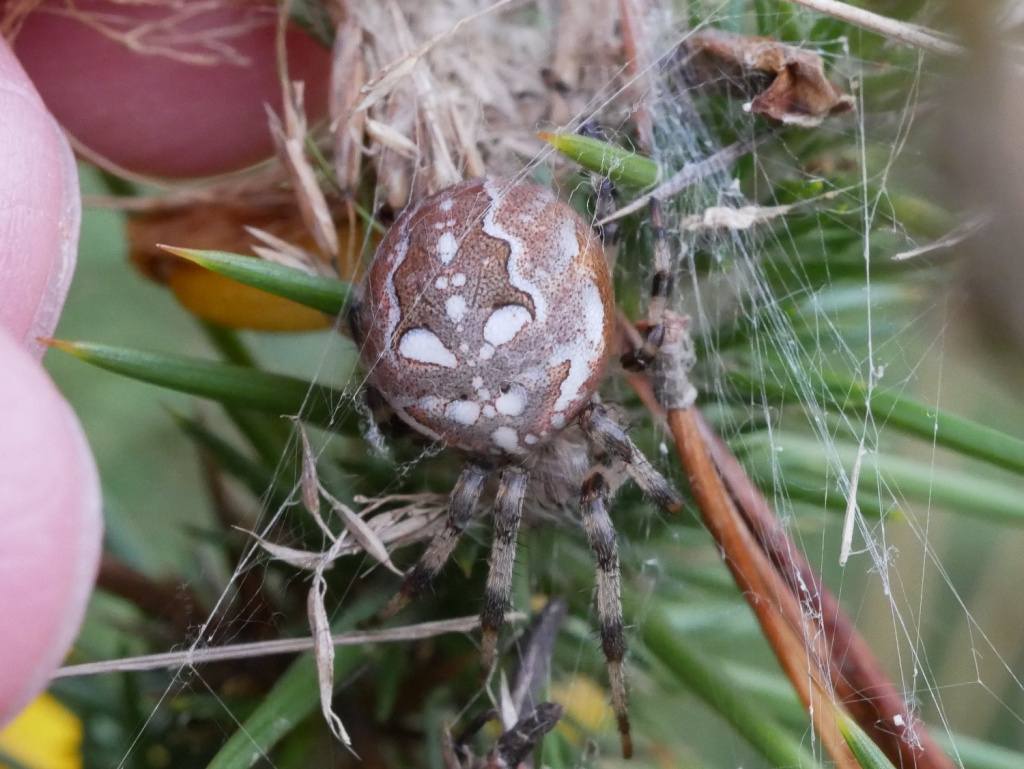 The spider is found on vegetation which has sufficient height and strength to support the large orb web, such as undisturbed grassland, heather and gorse. There may be a preference for damper situations. The web is usually found stretched across the gap between plants, with a large tent-like retreat at one side, where the spider can be found if not in the centre of the web. This very variably-coloured spider holds the British weight record. Adults are found in late summer and autumn, with a male peak in August and female peak between August and October.Status