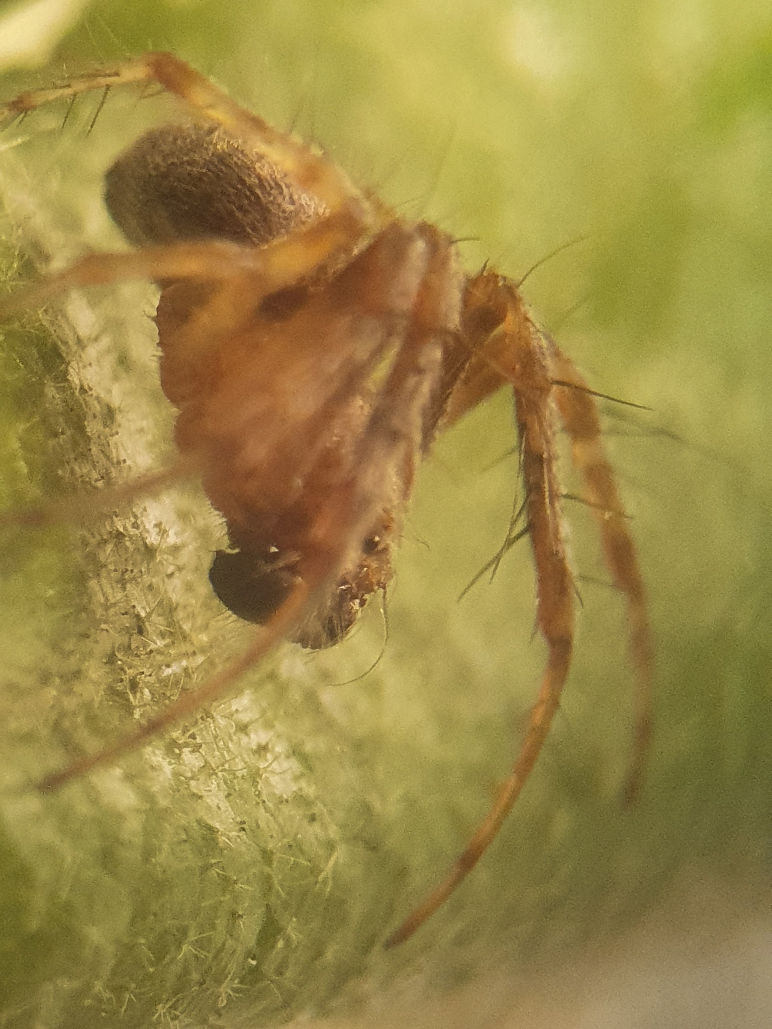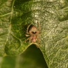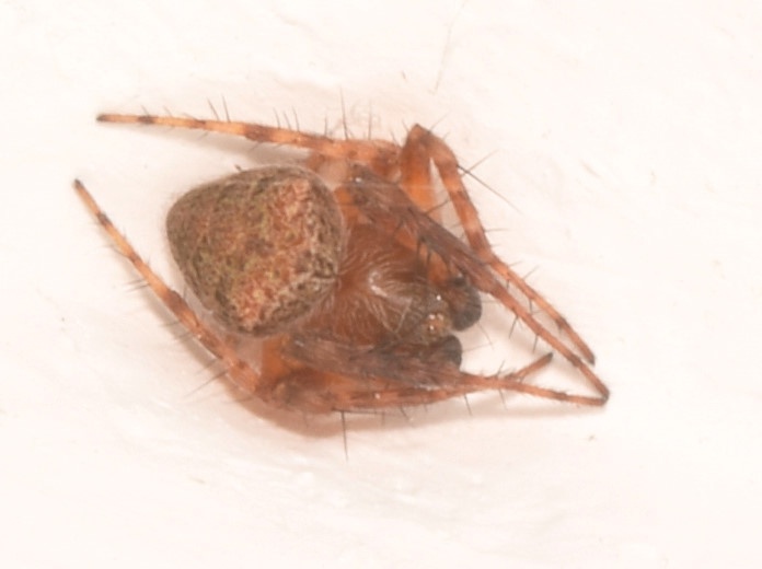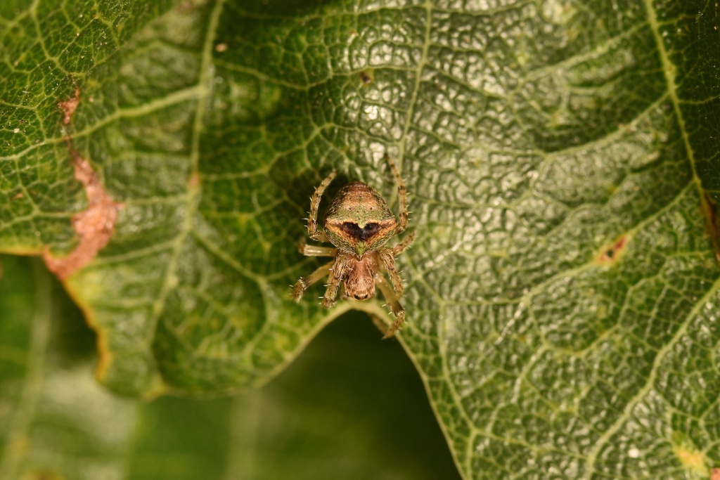 Deciduous woodland. In contrast to Araneus sturmi the orb webs of this species are usually constructed on broad-leaved trees and shrubs, especially oak Quercus. Adults of both sexes are found from early to mid-summer, with some females surviving through to late summer.Status