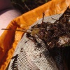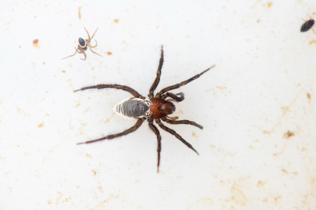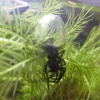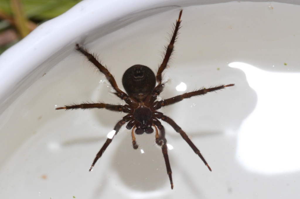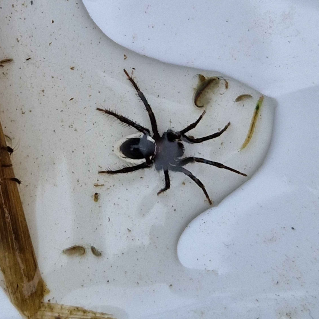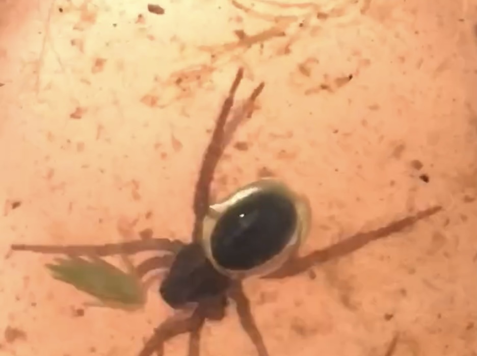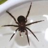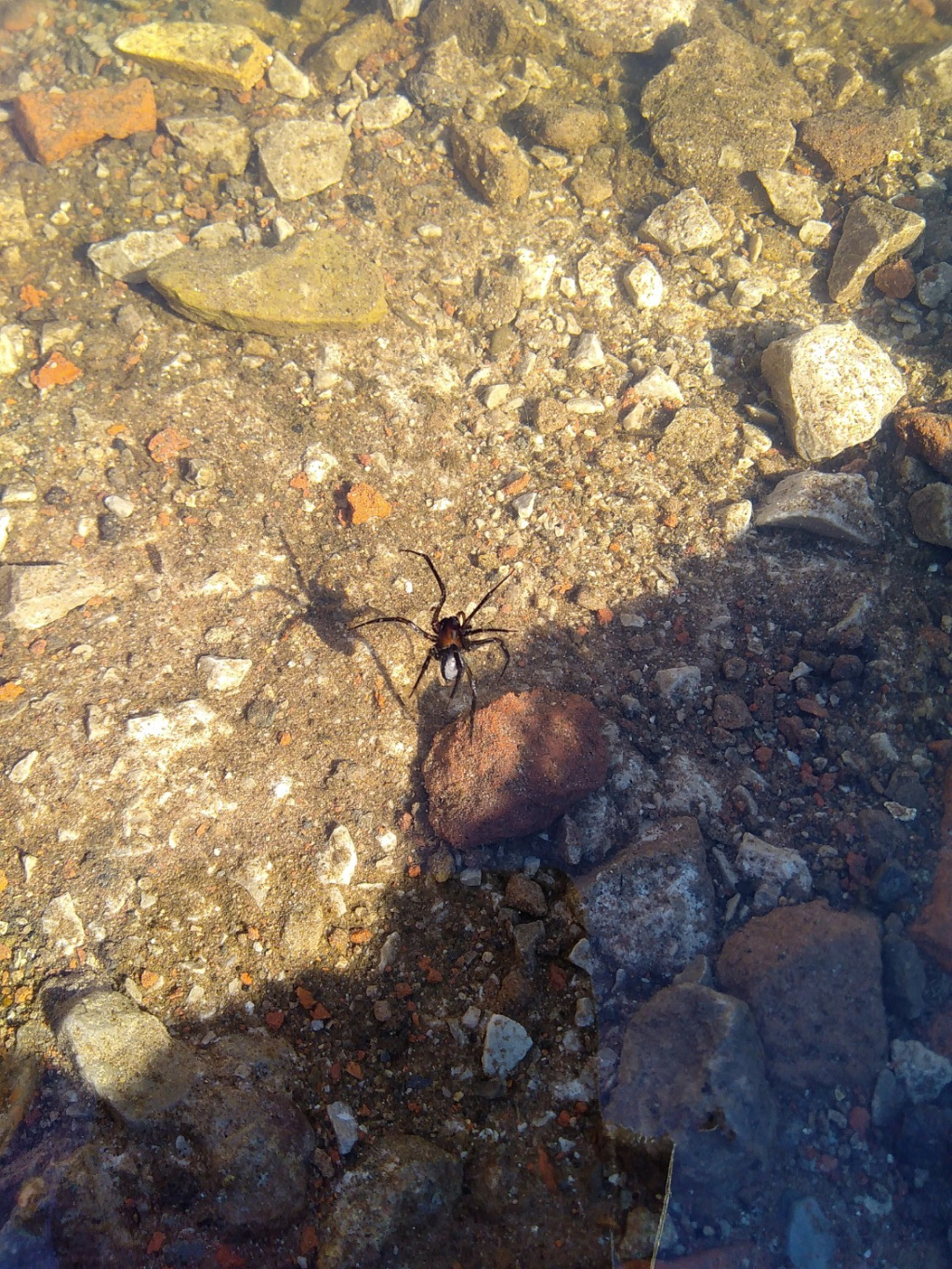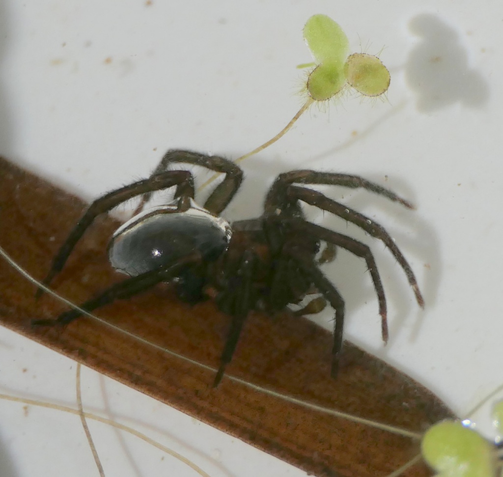 The water spider is found in clean, vegetated fresh water with little current e.g. ponds, lakes, dykes and canals where it lives submerged under water throughout most of its life. It creates an underwater silken cell that is filled with air from the surface. Prey is taken back to this retreat for consumption and the cell is also used for mating, egg-laying and over wintering. Occasionally the spider will feed at the surface and moulting normally takes place out of the water. The spider is adult throughout the year but most active from spring to late summer.Status