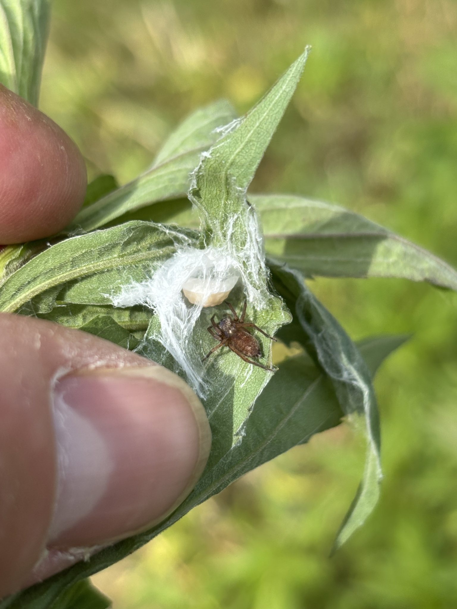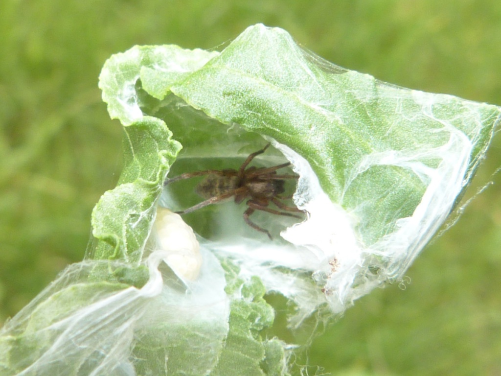 The spider can be found amongst low vegetation and detritus in a wide range of habitats, most often in damp or marshy situations, but also scrub grassland, nettle beds, rubbish tips and heathland. The female can often be found with her eggs in a retreat constructed in a curled leaf held with silk. Adults of both sexes are found mainly in late spring to mid-summer, females occasionally persisting into the autumn and winter.Status