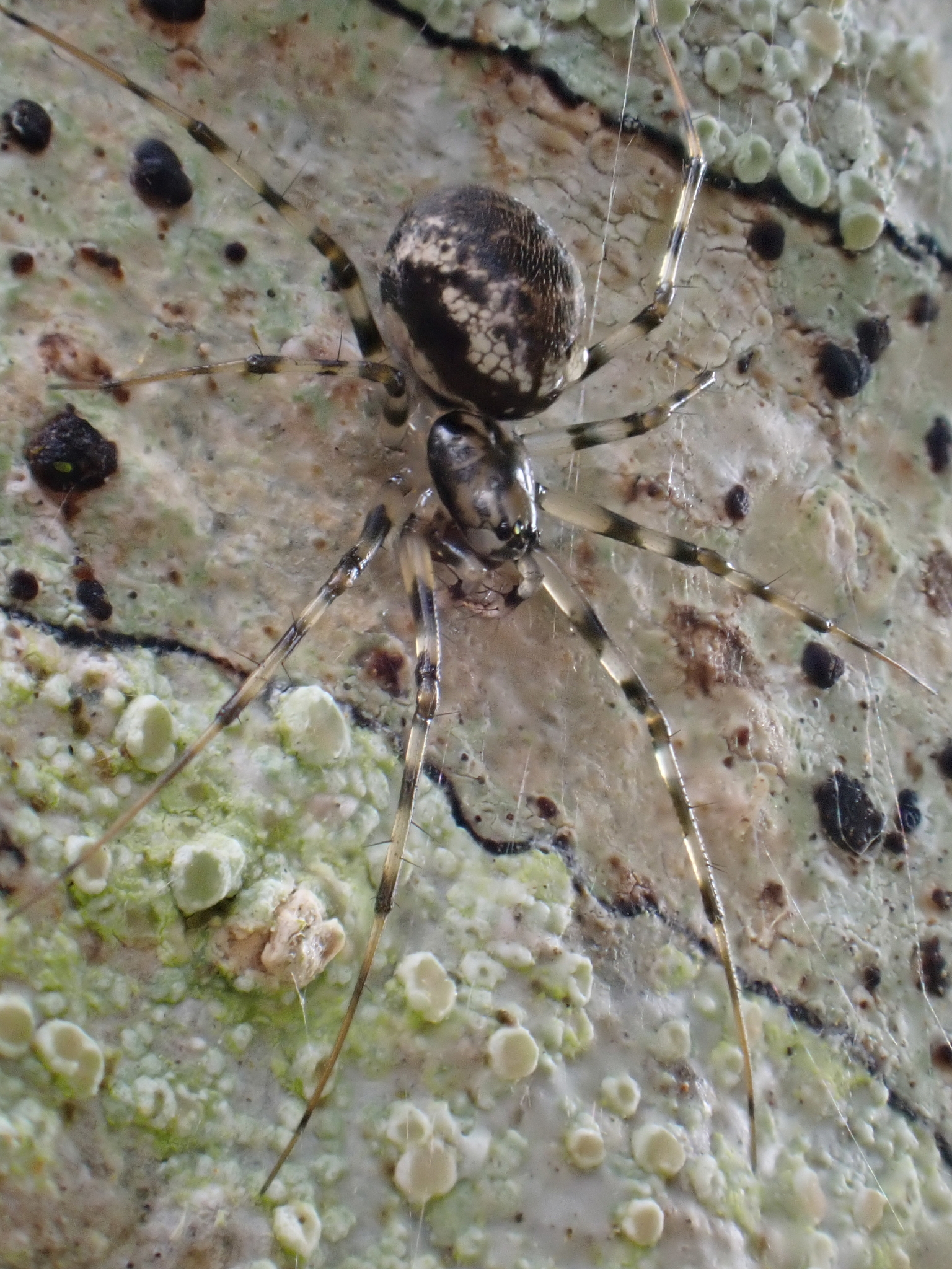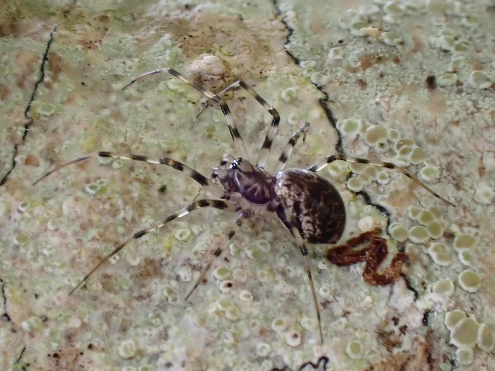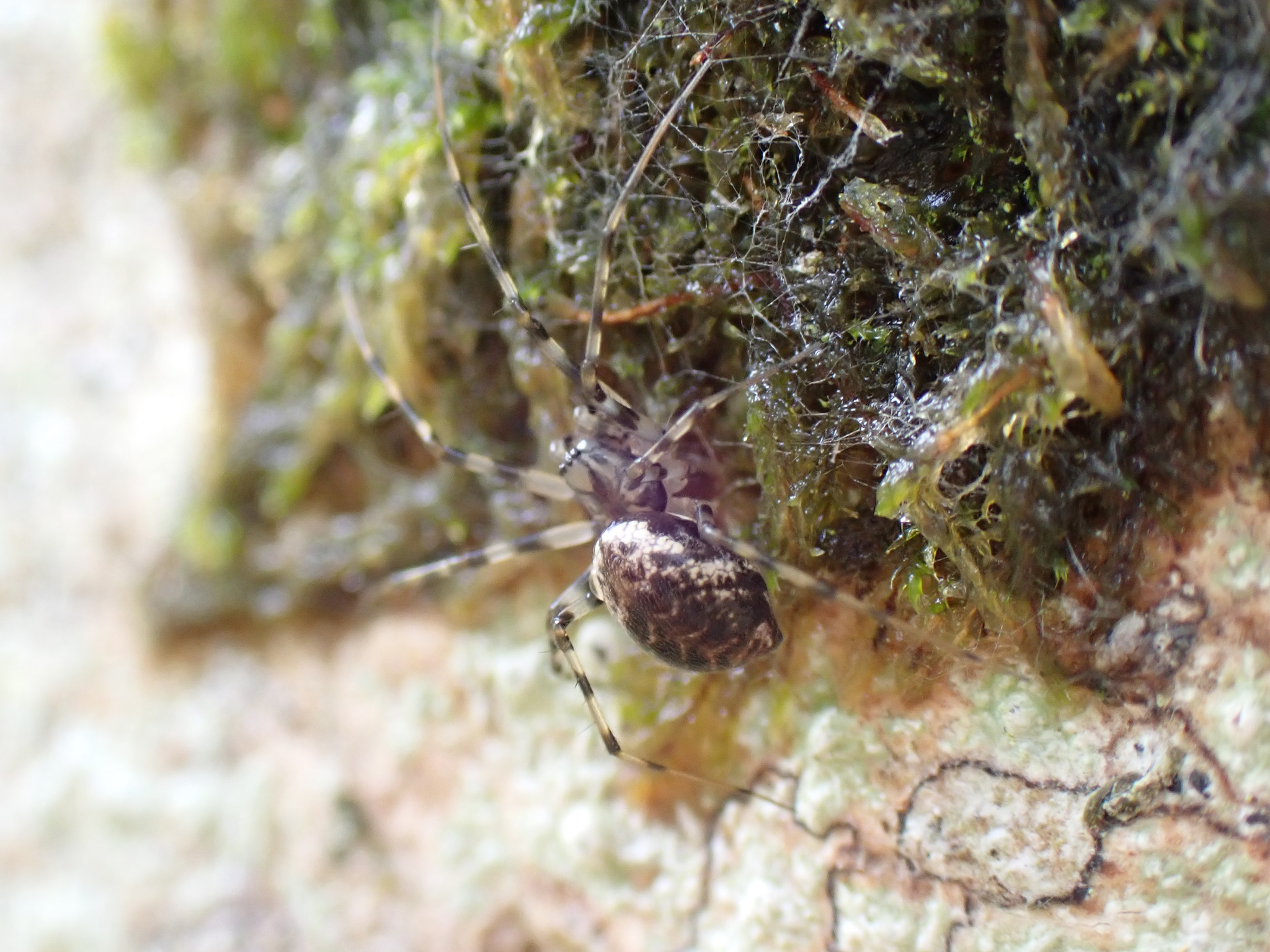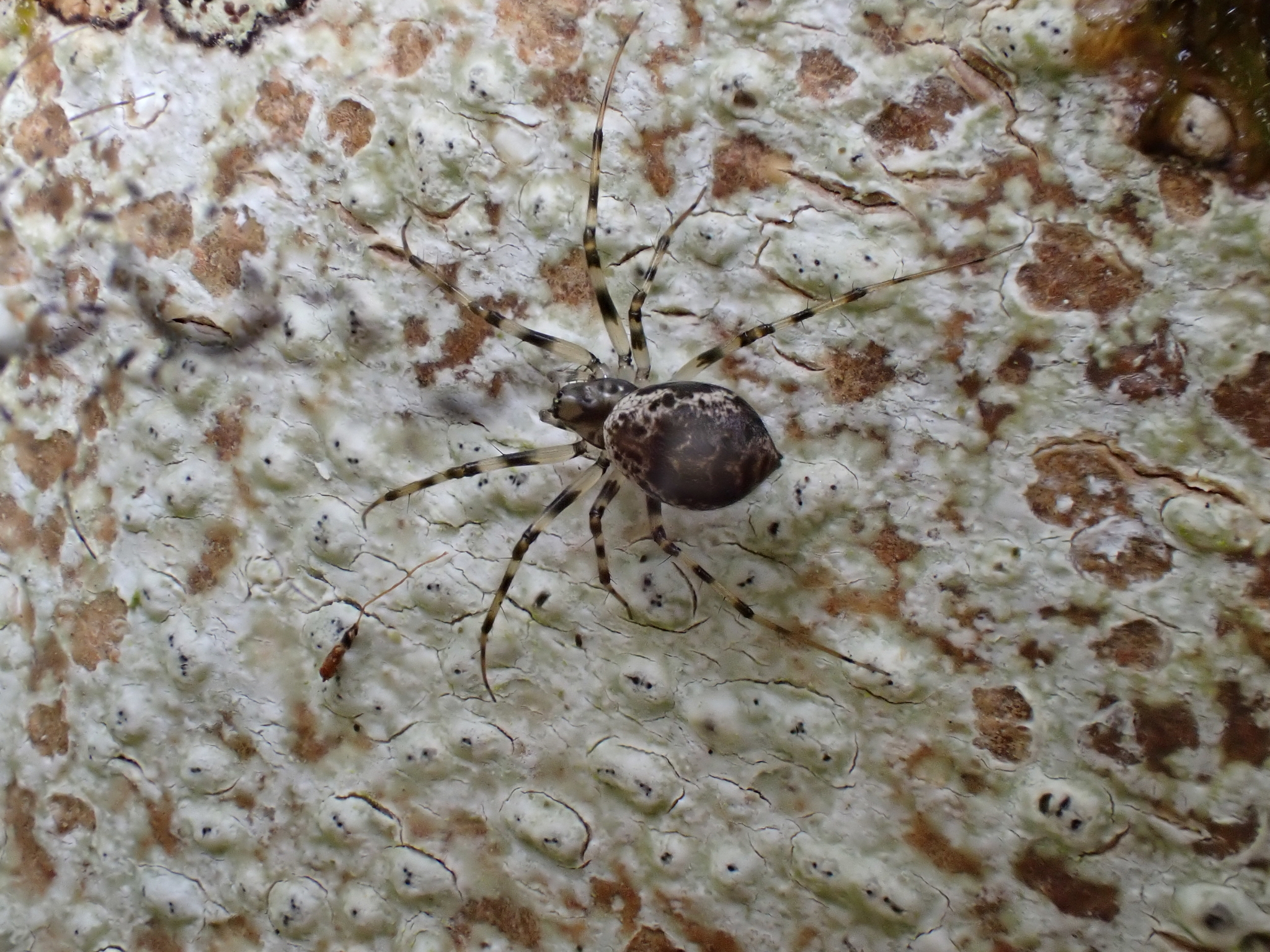 D. socialis almost always occurs well camouflaged on the bark of tree trunks, less often in the litter at the base of trees and sometimes on fences in woods. However, the species has been recorded from a number of other habitats including damp rock faces in a disused quarry (Mackie 1965). The females construct a web of very fine threads, covering an area of about 6 x 4 cm2, which lies very close to the trunk surface, practically invisible to the naked eye, and on this web they are approached by males during courtship (Kullmann 1961). Investigations in Germany showed that the species selected regions of trunks covered with a layer of epiphytic algae, probably because of increased prey availability in such areas, and placed webs under protuberances on the trunk, presumably to gain protection against water (Schütt 1997). Mackie (1965) showed that in north Cheshire, 45% of individuals were uniformly black, and suggested industrial melanism. Adults occur in late summer and autumn with a peak of activity in September and October. Mature females have been seen on trunks until late in December (Gurr 1967) and there is some evidence that a few adults over-winter. Immatures have been noted in tiny sheet webs in detritus at the base of trees but may be seen on the trunks from April to July.Status
