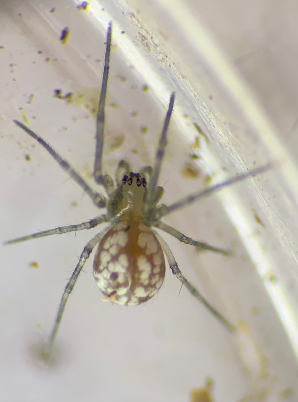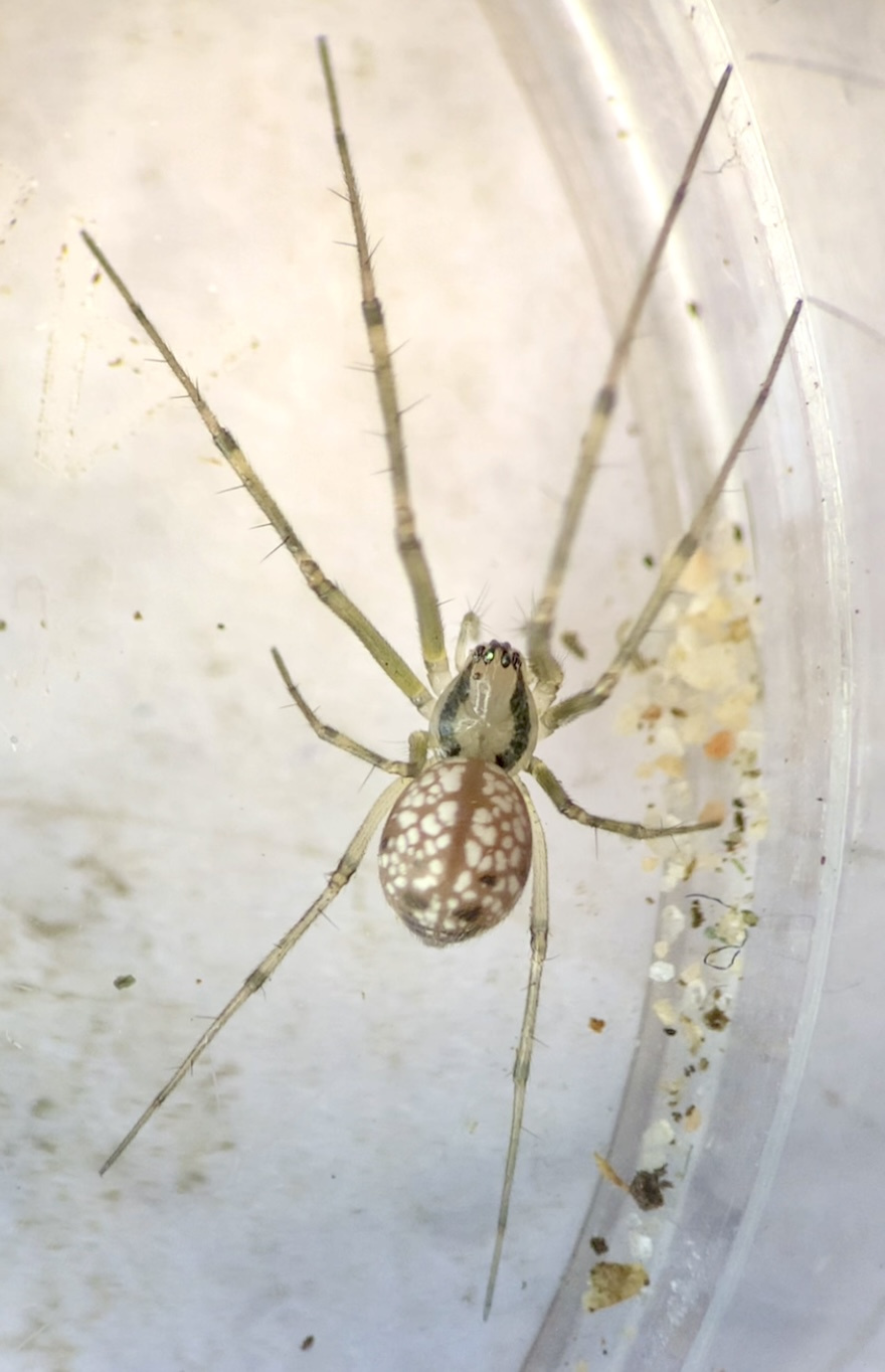 F. bucculenta occurs on bushes and low vegetation in damp places in a variety of habitats, including earthy banks, low vegetation in marshy areas, rough unmanaged grassland with scrub and tall herbaceous vegetation, open woodland with bracken and grass and tall heather. It has been observed that when females of this species are disturbed they drop to the ground and remain motionless. During this time the usual lightish colour of the abdomen changes to a much darker hue making the spider more difficult to spot. The former colour and patterning return after a few minutes (Bristowe 1958). Adults may be found in late summer and autumn.Status
