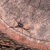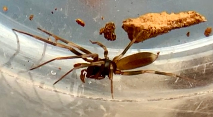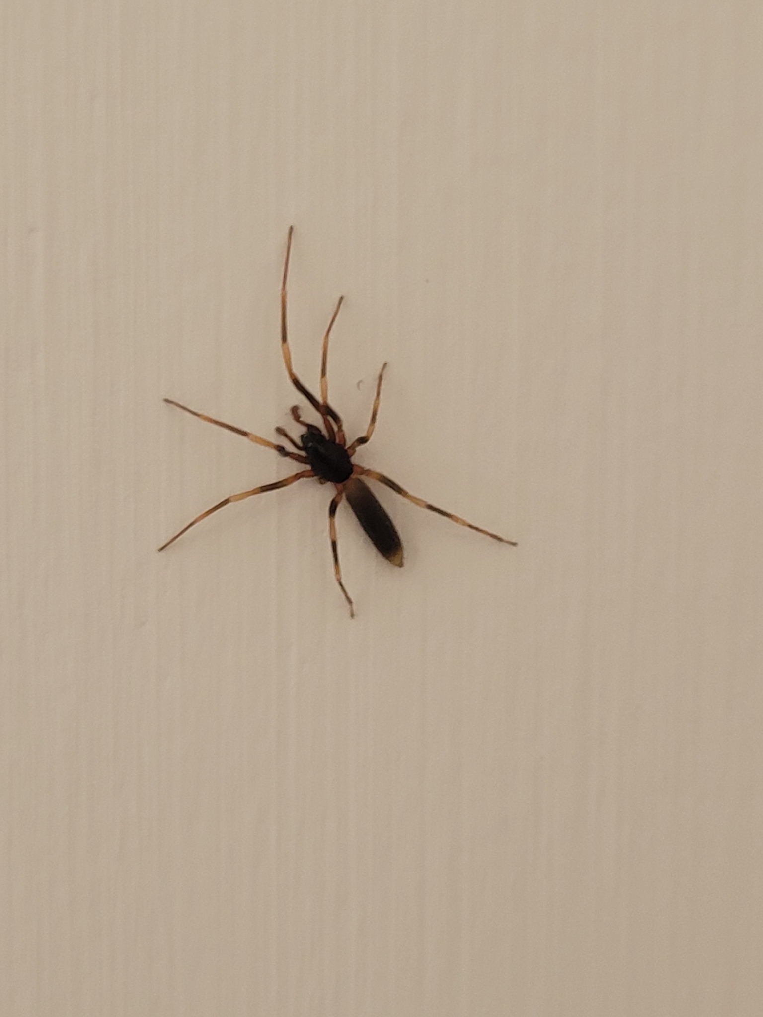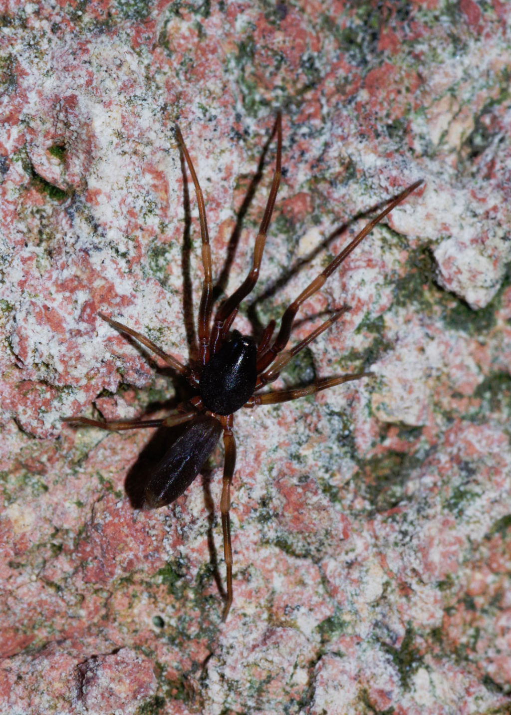 The spider is found under stones and bark, in ivy, dry litter and detritus wherever it collects such as in the bottoms of hedges, in epicormic shoots of trees, birds' nests and squirrels' drays. It has been recorded in gardens and sometimes houses. A fast moving nocturnal hunter with a rather elongated appearance, especially in the male, it spends the day in a sparse silken cell. The pink eggs are laid in batches of about 20 and guarded by the female (Bristowe 1958). Adults of both sexes can be found in every month of the year with peaks during the spring/early summer and autumn periods. Large numbers of all age groups occur together in suitable habitats.Status