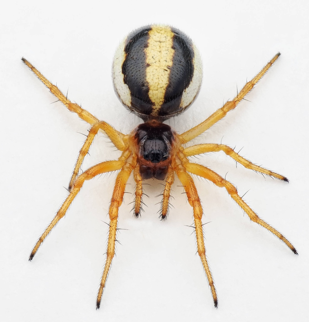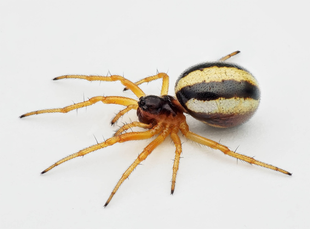 This species spins orb webs on low vegetation, often on calcareous grassland but also in damper areas of heathland, acid grassland, and other tussocky and rough grasslands. Crocker & Daws (1996) also note that occasional specimens may be found on low shrubs. Both sexes are adult in early summer.Status