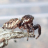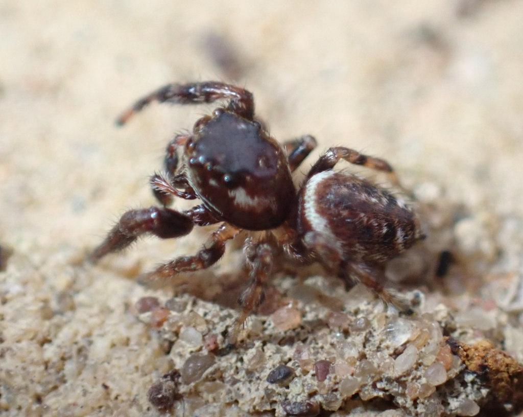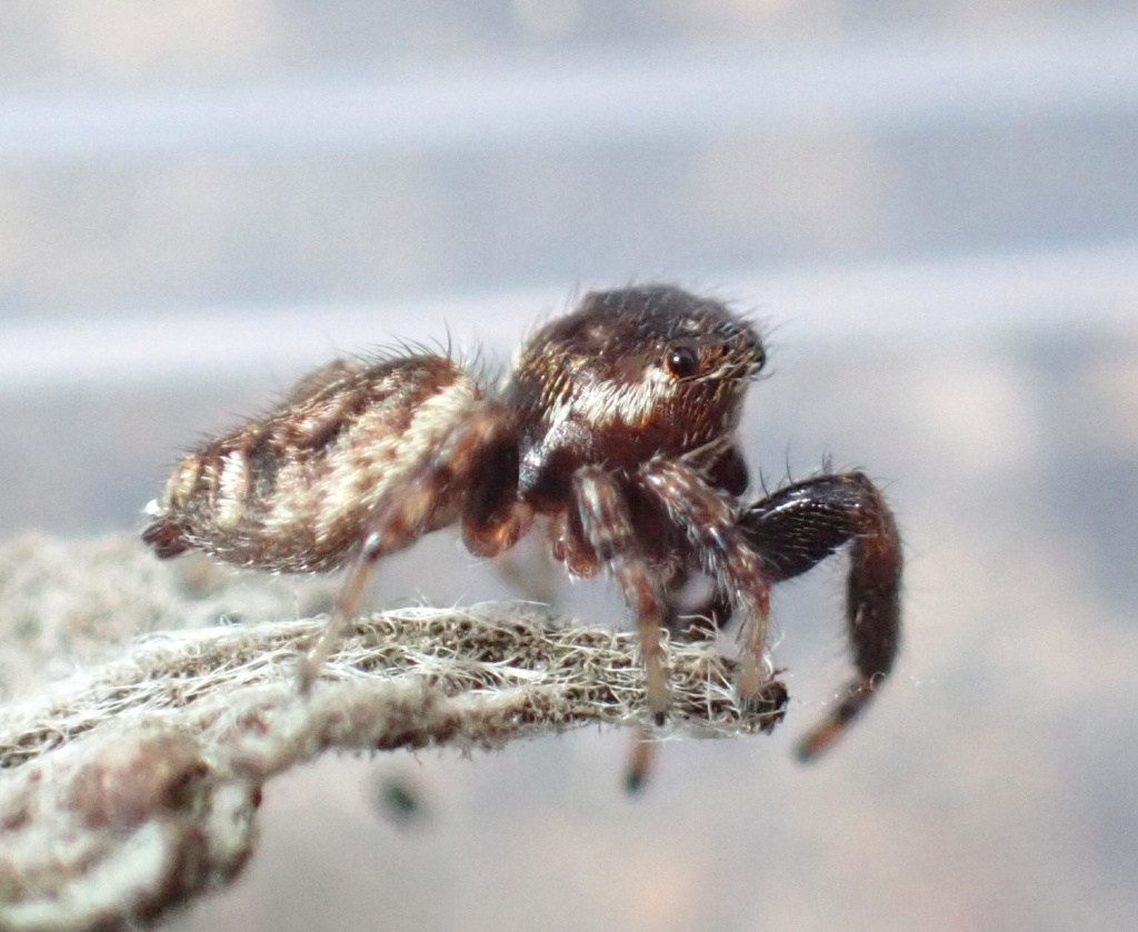 This jumping spider was first recorded in Britain in 2002 at Mile End Park in East London (Middlesex) and subsequently found at Brooklands, Surrey and two sites near the Thames in South Essex and subsequently more widely. In Europe the species occurs mainly in southern and central Europe, but occurs as far north as Belgium. Although it was originally thought most likely that the spider had been imported with pines into the Mile End Park site, it now seems more likely that the spider has naturally colonised Britain from Europe and is in the process of spreading.Threats