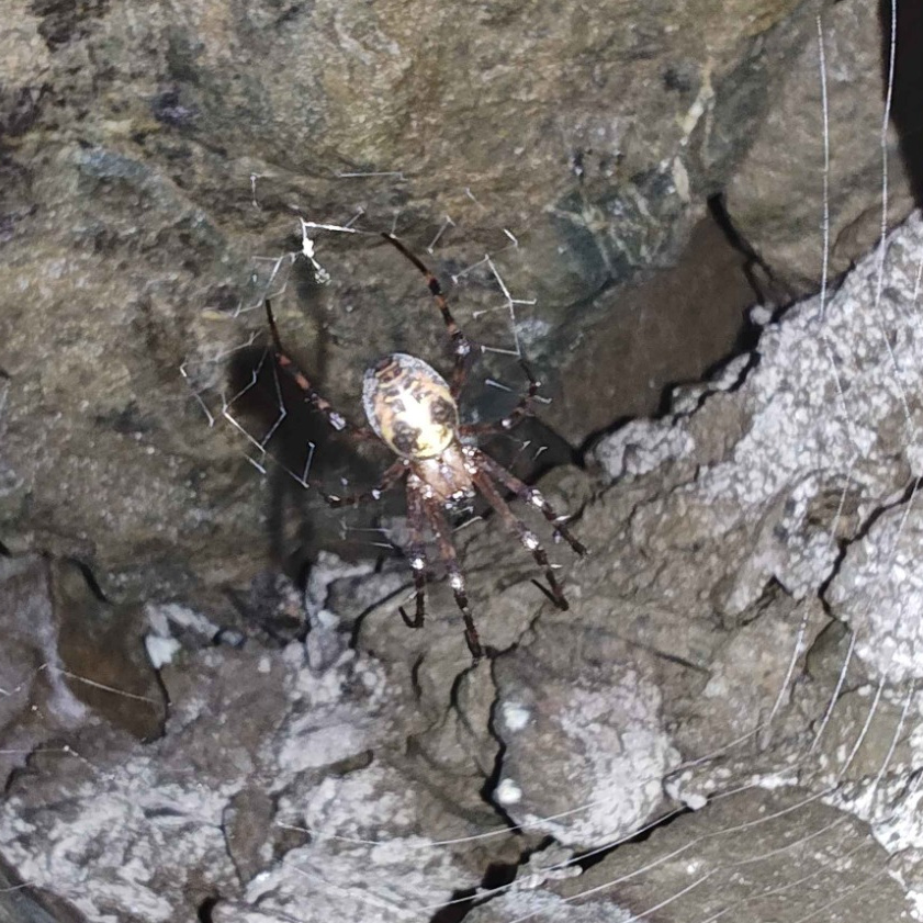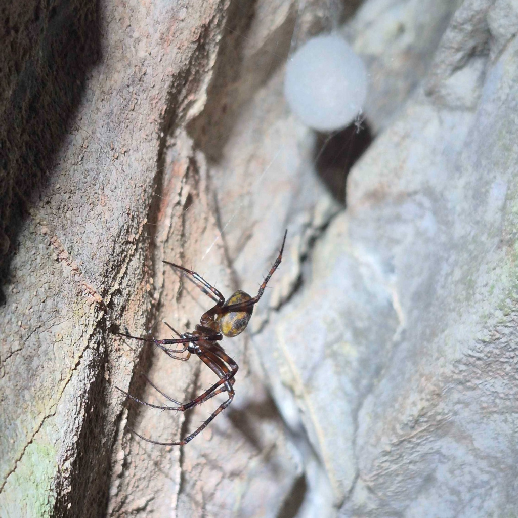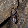 This species lives exclusively in permanently dark, damp habitats such as caves (including sea caves), mines, sewers, ice-houses, damp cellars, limestone pavement, hollow trees and railway tunnels. Very occasionally it may be discovered beneath convex artefacts in fields (Felton 1995). Dry habitats are not occupied by this species. M. menardi produces a large orb web, but usually resides on the wall of its habitat. Prey items include hibernating Lepidoptera, mosquitoes, slugs, isopods, millipedes and beetles (Smithers 1996; Cropper 1997). Both sexes are mature throughout the year (Howes 1999). Large, white, tear-shaped egg-sacs are suspended from the roof of the spider's habitat between September and February, these persist for a long period even after spiderling emergence. Hatched spiderlings have been noted within egg-sacs in January.Status