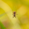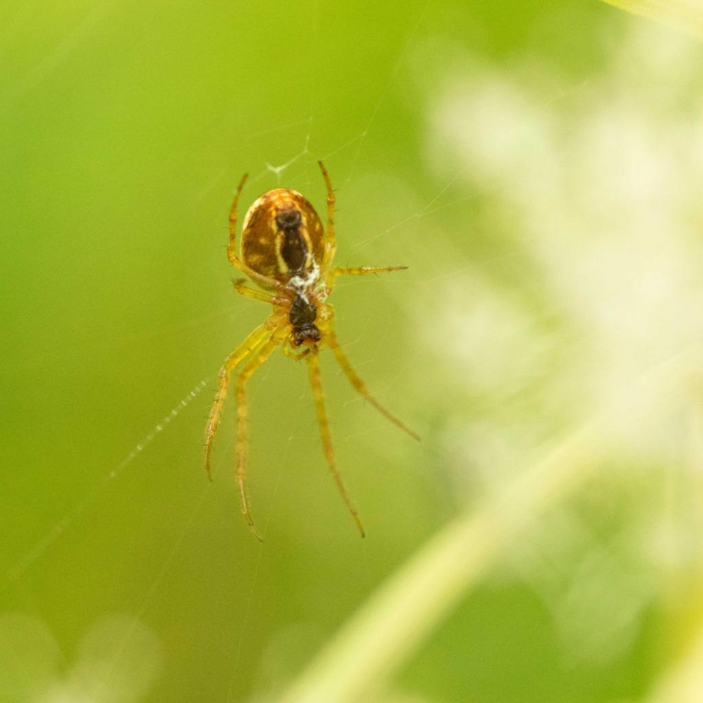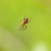 Like M. segmentata this species occurs in almost any habitat, and can be collected in large numbers by sweeping in grassland or in woodland understorey. The colour variation of both this species and M. segmentata can be confusing to the beginner. The orb webs are usually inclined with the spider sitting at the centre, on the lower side, often with the male waiting at the side of the female's web. Adults of both sexes have been recorded throughout the year, but mainly from late spring to mid-summer.Status