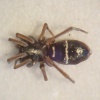 M. pulicaria is often to be found in open areas of short vegetation where there are scattered stones or small beds of stones. It has been recorded from most habitats particularly the warm, sunny parts of sandy heaths, chalk downlands, dunes and derelict land, but it has been found in saltmarsh, sphagnum filled hollows in dunes, moss in broad-leaved woodland as well as stony, bare, dry habitats. Although not myrmecophagous the spider quivers its front legs in an ant-like fashion which may help prevent it falling prey to larger spiders which generally avoid contact with ants. Females enclose the eggs within a stiff sac which is said to resemble a rimmed pot and although she does not guard them, Bristowe (1958) states that she returns frequently to check the egg-sac. Adults of both sexes have been recorded from early February to late November and mature specimens may occur throughout the year. Our data indicate the main season is late spring to mid-summer.Status