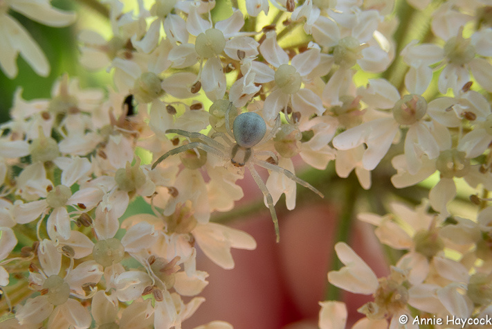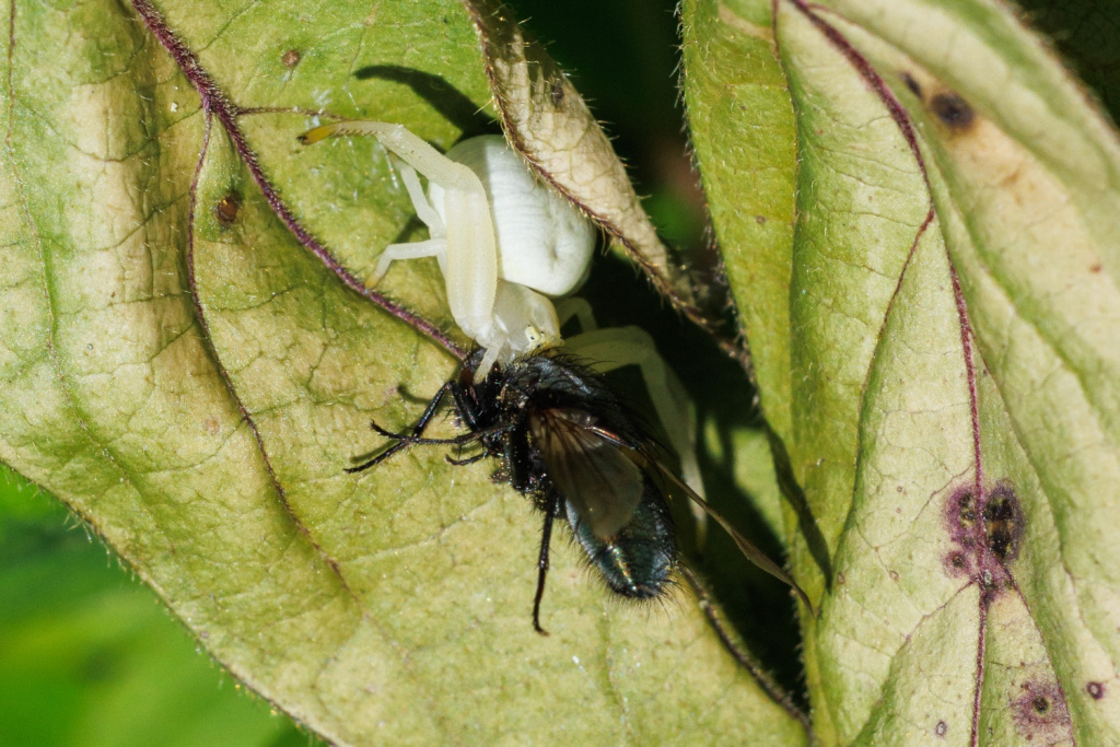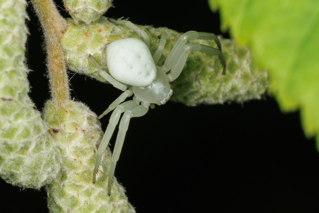 This species seems to be most commonly found in the boundary region between grass and scrub, such as the edges of woodland rides but it also occurs in more open locations. It may be found in the vegetation, or sitting on a flower head waiting for prey. In these situations its cryptic colouring may make it difficult to see until it moves, especially as the colouring may vary through white, yellow and greenish to match the flower. Only mature females can undergo background-matching colour changes. Some females have red anterior, dorso-lateral lines or spots which appear to be genetically determined and are unaffected by the background colour. Mature males are smaller and predominantly brown. The sexual dimorphism for colour is probably a result of males and females occupying different niches (Oxford and Gillespie 1998). Adults of both sexes have been recorded between May and August, but mainly in May and June with females occasionally persisting into the autumn or perhaps even through the winter with one female recorded in leaf litter in March.Status