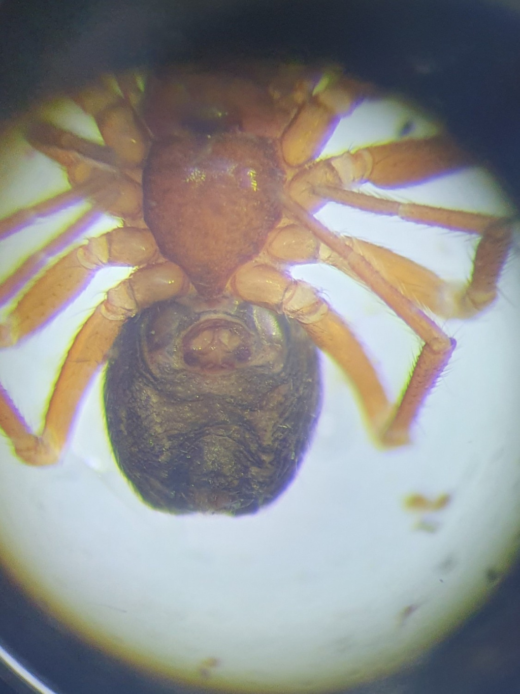 M. castaneipes inhabits two different habitats in Britain. In the south it has been found abundantly amongst moss growing on the trunks and lower branches of standing trees (Merrett 1979). In the north in addition to moss on tree trunks and rocks, it associates with open uplands and mountains, where it lives beneath rocks. Adult females have been recorded in most months of the year. Adult males have been found in the autumn and again peaking from January and February until April.Status