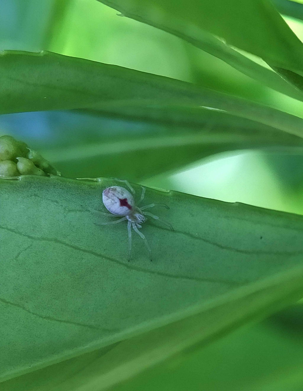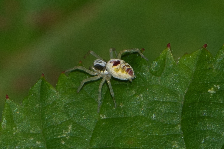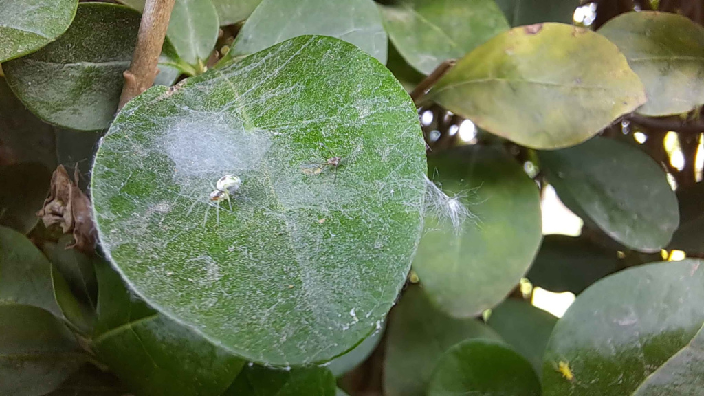 The spider occurs on low broad-leaved bushes and shrubs in hedgerows and gardens, but also sometimes in scrub and open woodland. It spins a small web on the surface of leaves. Both sexes are adult in May and July. In North Essex females with egg-sacs have been found in their webs on the under-surface of leaves in September but most records have been in June and July.Status