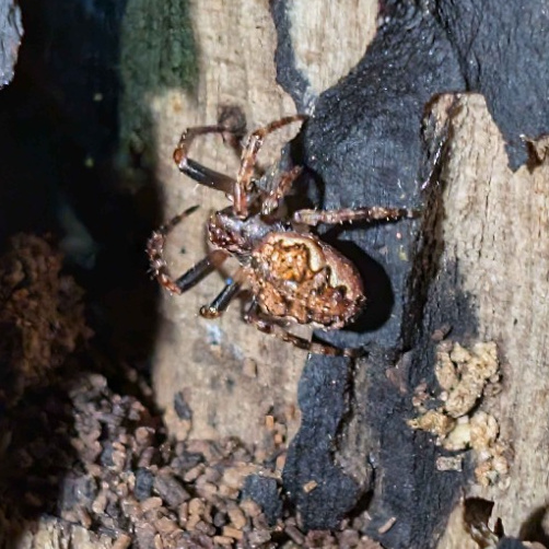 The spider conceals itself under bark and in fissures in posts and fences during the daytime. In some areas it is a common resident of window and door frames. The body is flattened and this assists the spider to secrete itself in the cracks and fissures. This spider is nocturnal and builds a conspicuous orb web between its retreat and surrounding vegetation. Whilst the web is usually empty during the day, the spider can be found hidden away nearby. Adults of both sexes are found mainly between late spring and autumn, but females and occasionally males can be found during the winter.Status
