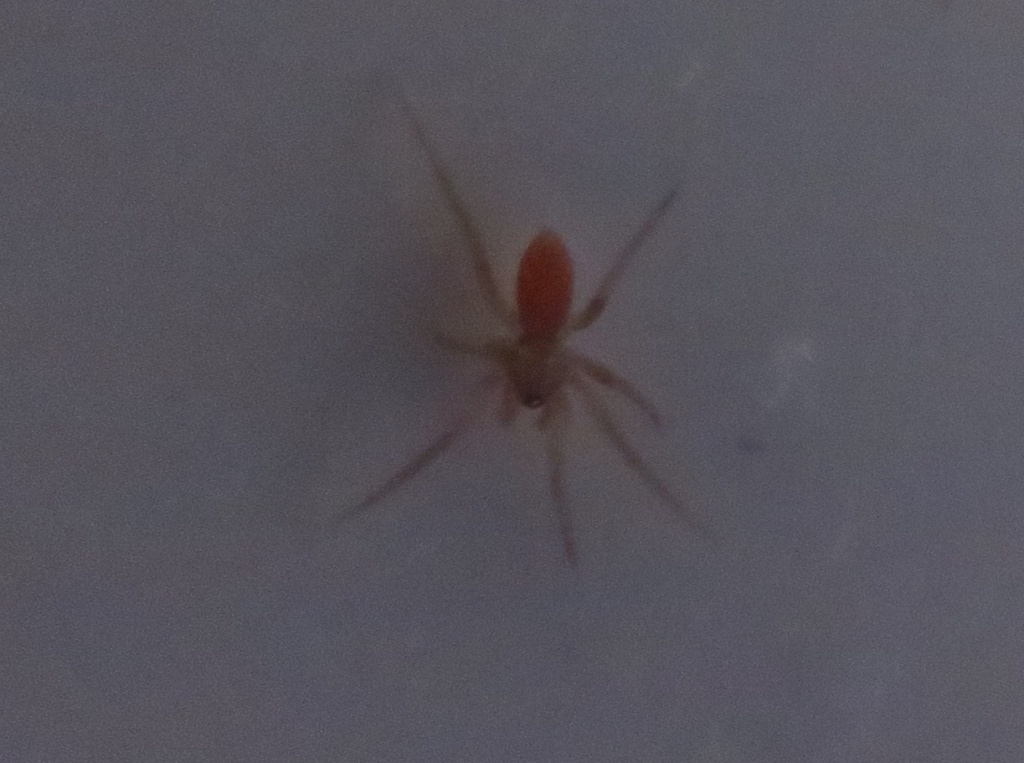It is almost confined to houses and other warm buildings but Ian Dawson has found it outside in March in the stiff leaves of a yucca. The small size and nocturnal habits of Oonops domesticus enables it to live almost unnoticed in houses. Being an active hunter with slow, positive movements, interspersed with short, fast dashes and pauses, it can be found on ceilings and walls after dark as it seeks a mate or prey. During the daytime it remains concealed in a silken cell. Batches of two eggs are laid and there are probably several such batches of pink eggs which are visible through the wall of the sac. Adults of both sexes are probably to be found at all times of the year.Status
