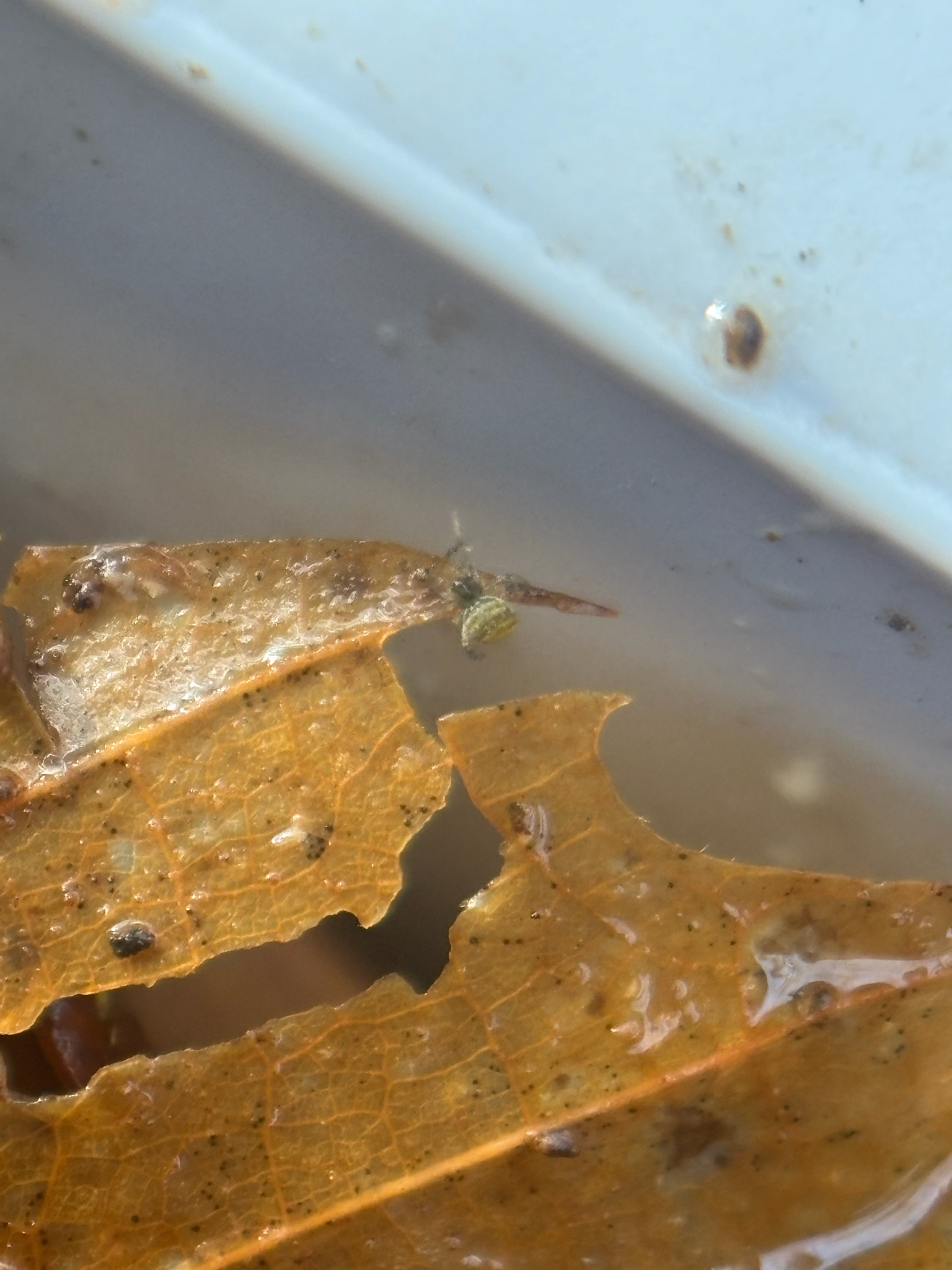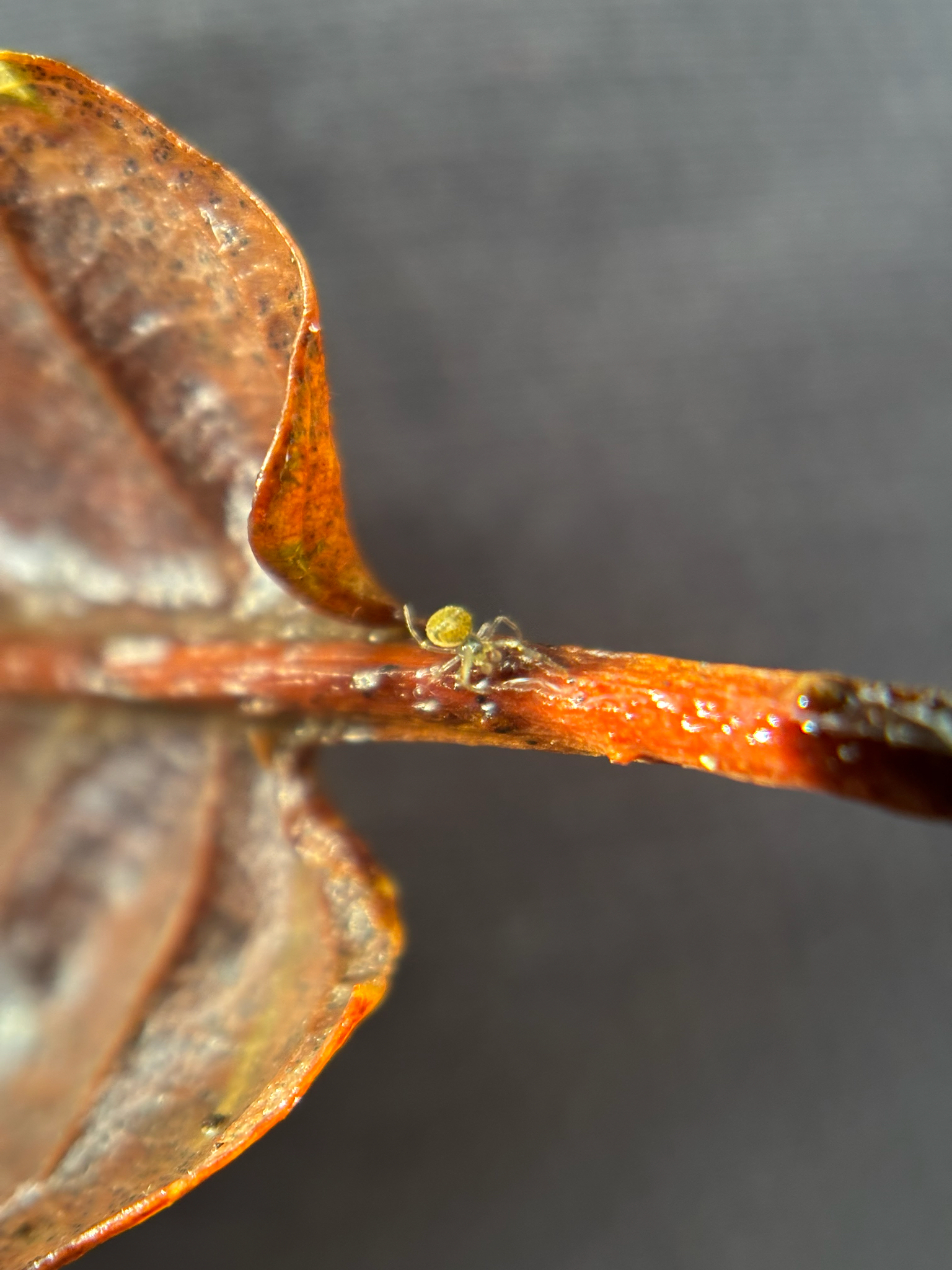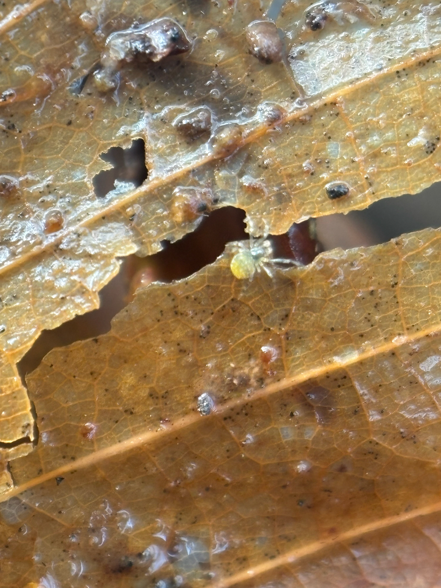 The webs of this spider are usually constructed on shrubs and the lower branches of both evergreen and broad-leaved trees in a wide variety of habitats. The distinctive white sputnik-shaped egg cocoon is one of the easiest ways to record the species presence. Though found on a variety of trees, oak definitely seems to be favoured and it can often be found under an oak leaf in summer, with or without female spider in attendance (I. Dawson, pers. comm.). It may also be found on herbaceous vegetation of all heights and in leaf litter. Both sexes are mature from late spring to mid-summer, but can also occasionally be found through the autumn and winter.Status