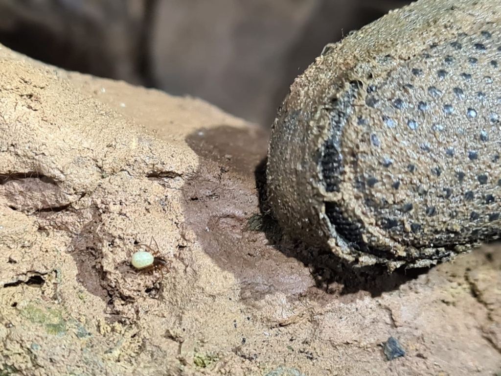 Typically this spider is found within damp mines and caves where it constructs a small web within recesses in the rock. P. convexum can also be found in damp culverts, cellars, beneath rock piles, amongst thick undergrowth and within sewage filter beds (Crocker & Daws 1996; Locket & Millidge 1953; Bristowe 1958). Adults may be found throughout the year. Single egg-sacs are affixed to the rock surface and have been noted in November.Status