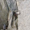 This is an easily recognised spider found on sunny walls and fences in rural and built-up areas but also indoors usually near a window. It is also found in more natural open habitats, on rocks, shingle and occasionally tree trunks such as oak in open situations. The spider has been found in pine woodland, swept from heather and sometimes occurs at higher elevations. Totally melanin forms have been described from industrially polluted areas (Mackie 1964). As with all Salticidae the spider has good vision and the enlarged chelicerae in the males, easily seen by the females, play a role during courtship. Males are found mainly in May and June, females between May and July, but adults have occasionally been recorded into the autumn and even winter.Status