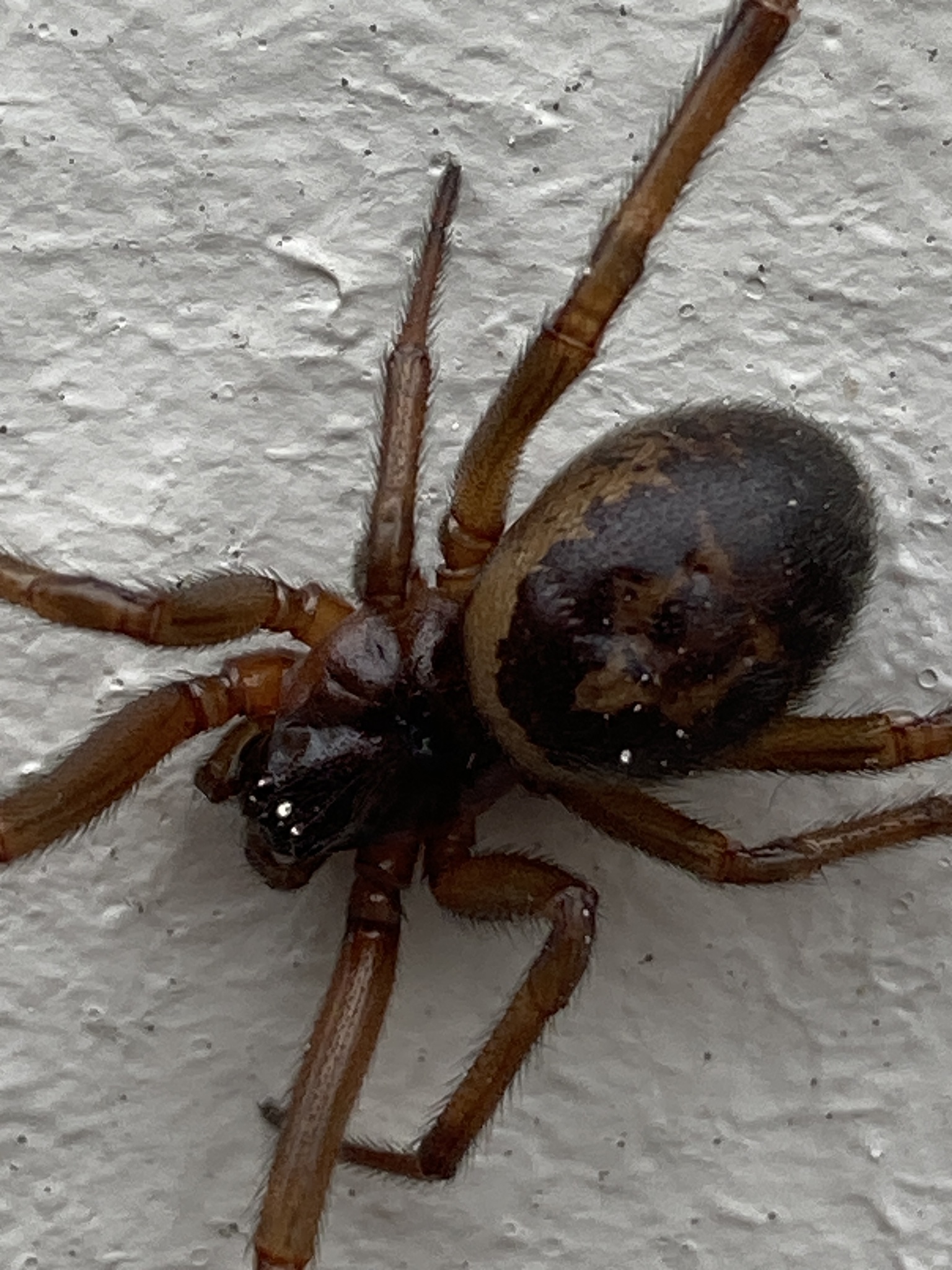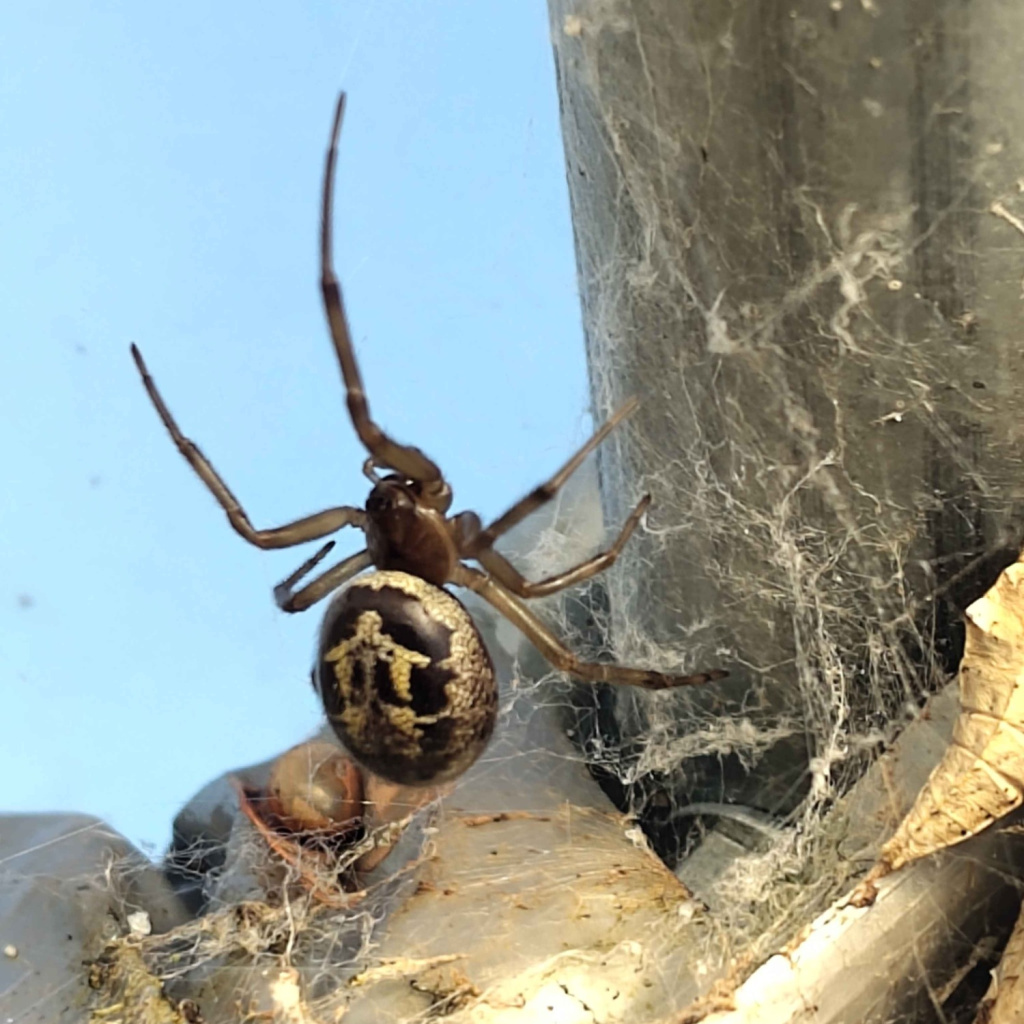 This spider is found mainly around houses, though more rarely indoors. It constructs a scaffold web that differs from others of the genus in the exceptional strength of the silk and in the tubular retreat that is at least partly concealed in a deep crack or hole. The species has been known to bite a human but the spider has received a lot of unjustified and inaccurate media statements about its danger to humans and its spread in Britain. Bites to humans are unlikely to happen in normal circumstances since the spiders are usually confined to their web, in cracks in walls or under window sills. The bite in most people would be little different to a bee sting, and there are currently few definite recorded occurrences in Britain since 1979, many reports almost certainly being the result of non-spider-related causes which have incorrectly been assumed to be the result of 'false widows'. The males are mature in the summer and autumn, the females probably throughout the year.Status