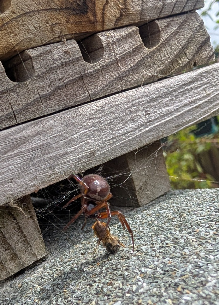 The spider became well established in various places along the south coast of England from Cornwall to Essex, and has increasingly been found established inland and further north. There are two recent records in Scotland, both believed to be the result of introduction with goods, and where long-term survival of any population is uncertain. In Europe the species is known from Ireland, France, Spain and Portugal. It is not listed in recent checklists for other western and central European countries.Habitat and ecology