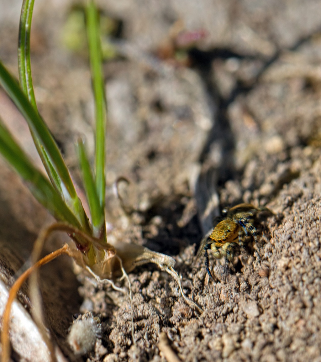 This little spider is found in warm, open, sunny habitats with bare surfaces, such as short turf on downs, sandy or stony banks, and quarries or old railway embankments. Adults of both sexes are found mainly in May, June and July.Status