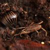 Like Anelasmochephalus, this flattened, short-legged species is restricted to the ground layer in calcareous soils and is a specialist (but not obligate) snail-feeder. Its main habitats are woodland and grassland. It is most easily found by sieving soil but has been collected from under stones, logs and in leaf-litter. Both Trogulus and Anelasmocephalus secrete a glue by which soil particles adhere to their bodies - presumably providing them with visual camouflage (against birds?) and possibly also allowing them to blend chemically and physically with the soil environment. Hooded mouth-parts may reduce the problems of feeding caused by soil and snail mucus. The species’ habit of playing dead (catalepsy) and blending with soil particles makes it difficult to spot for birds and other visual predators (and also humans). Juveniles are generally free of soil and a lovely purple colour. Adults are present throughout the year and may live for up to three years. Eggs are laid in the empty shells of snails and protected with a web-like secretion from the ovipositor (Pabst 1953). In Britain its altitude ranges up to around 260m at the Yorkshire sites (HRS).