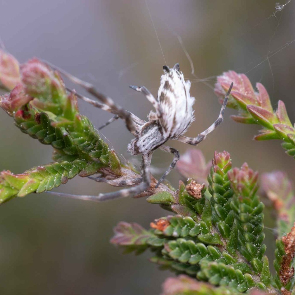The spider favours mature heather plants where it spins a horizontal orb web about half way up the plant. There is a stabilimentum (band of silk) running through the web's hub, extending to its opposing edges. The spider hangs down from the web hub in line with the stabilimentum. Both sexes mature in the late spring.Status