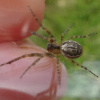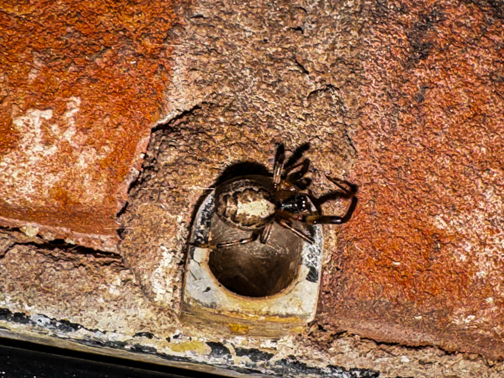 Z. x-notata conceals itself within a silk-tube retreat situated above an orb web with its distinctive missing sector. This spider is typically found on buildings and street furniture and is often found in the outside corners of windows. Specimens have also been discovered on cliffs and on bushes, especially near habitation. Adults have been recorded throughout the year, but mostly in late summer and autumn. Single egg-sacs, covered loosely with yellow silk, are produced in autumn and winter and are affixed to solid surfaces. Spiderlings emerge from the egg-sacs in spring.Status